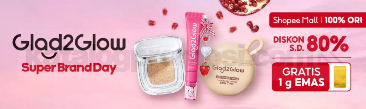 👉 Cek gambar Promo Glad2Glow Super Brand Day Diskon 80% di bawah ini untuk lihat detail diskon dan info hadiah emasnya 👀✨