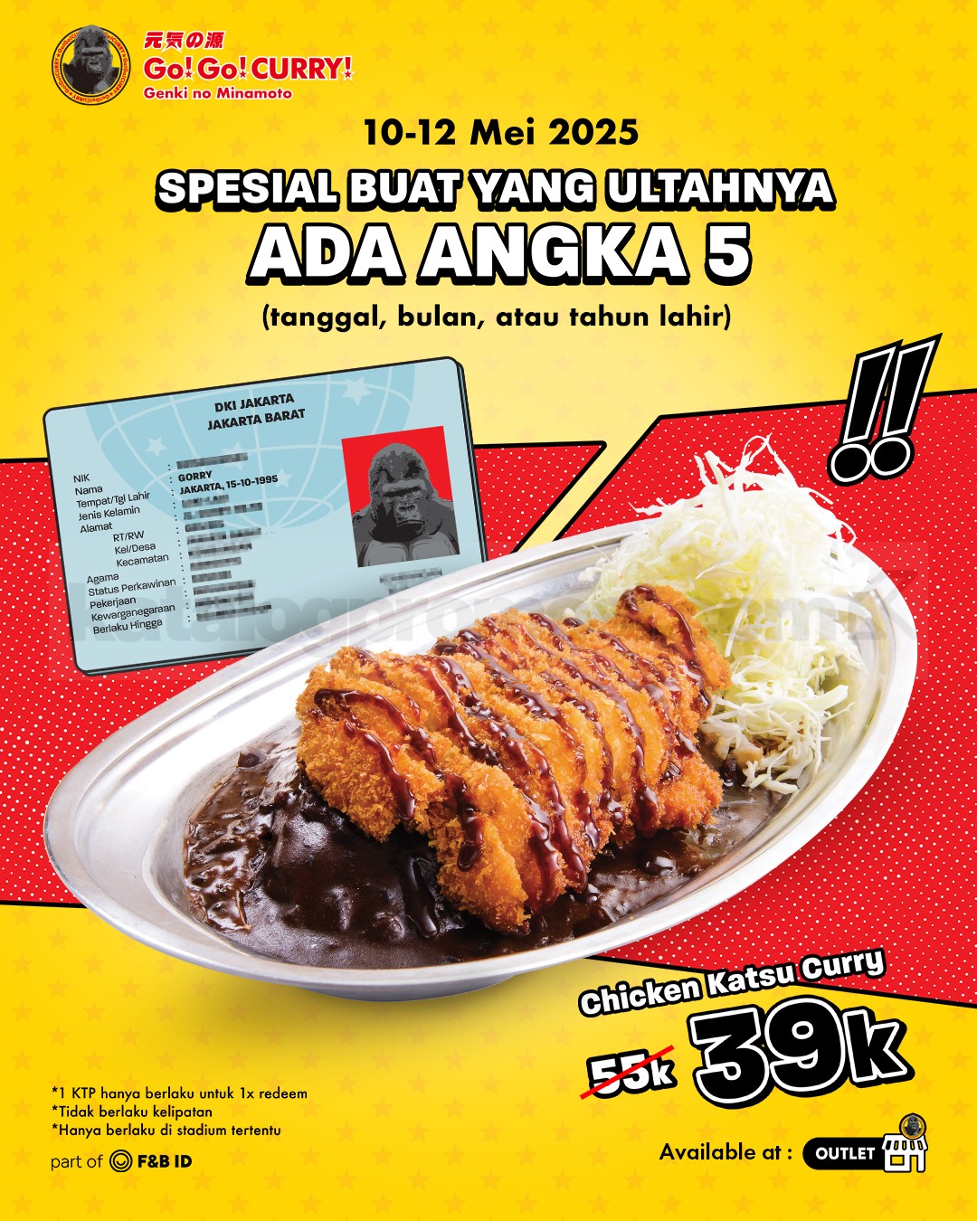 - Berlaku di seluruh outlet Go! Go! Curry! kecuali Pakuwon Mall Bekasi.