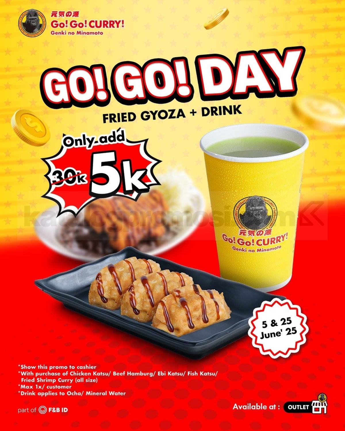 Lengkapi momen makanmu dengan Promo Go! Go! CURRY! 3rd Anniversary Menu Baru mulai Rp. 9.000 dan rasakan sensasi renyah yang bikin curry makin nikmat.