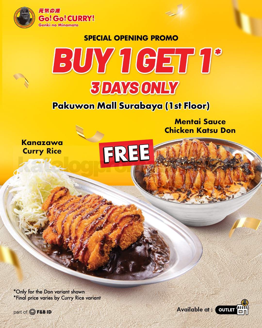 👉 Cek gambar Promo Go! Go! CURRY! Opening Pakuwon Mal Surabaya Buy 1 Get 1 di bawah ini untuk lihat detail menu dan ketentuannya.