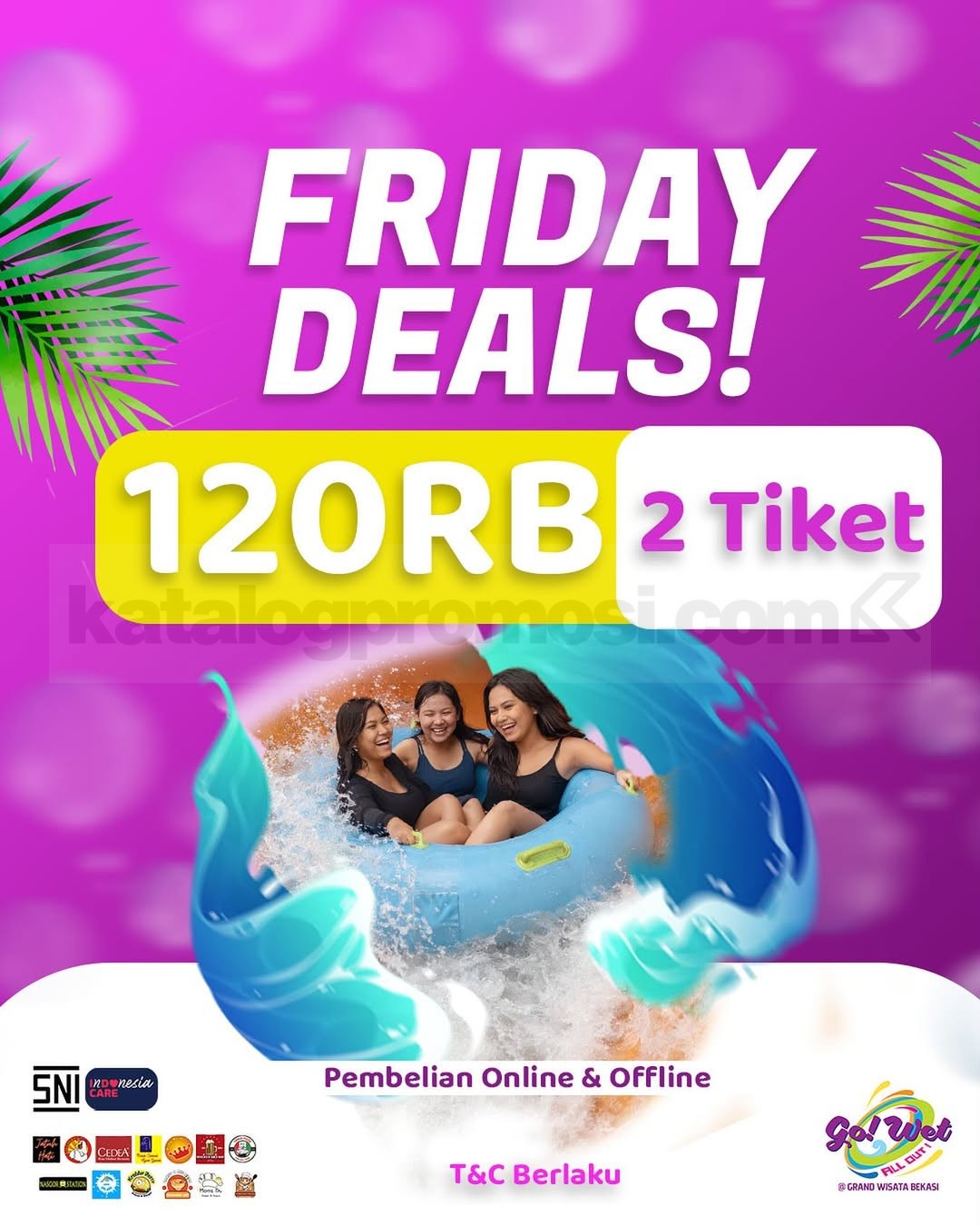 👉 Cek gambar Promo Go! Wet Friday Deals 2 Tiket Waterpark Rp. 120.000 di bawah ini untuk lihat detail penawaran dan suasana serunya 💦