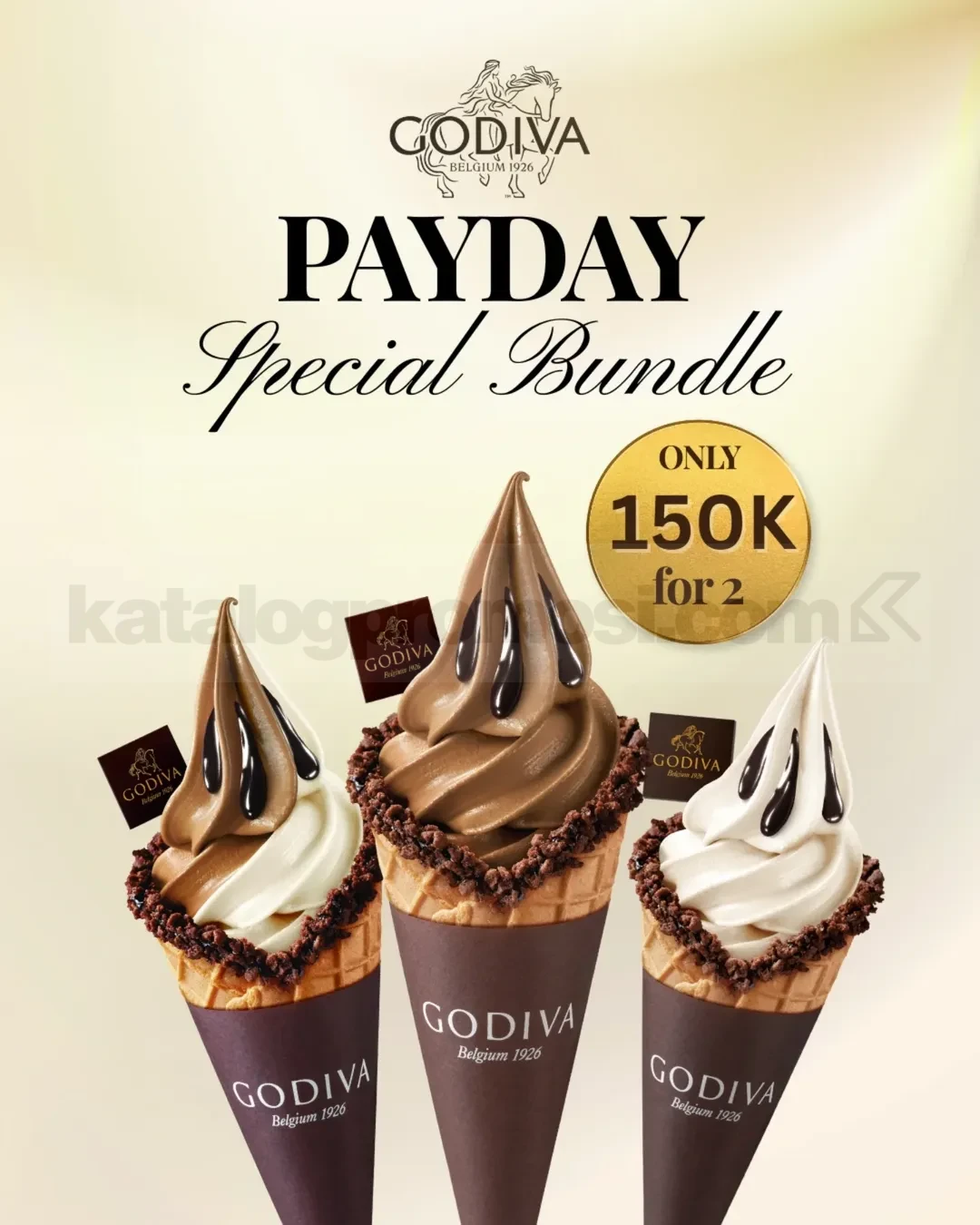 Promo Godiva Payday Special Bundle mulai Rp. 134.000 nikmati soft serve bundle untuk 2 orang berlaku dalam periode terbatas di seluruh outlet
