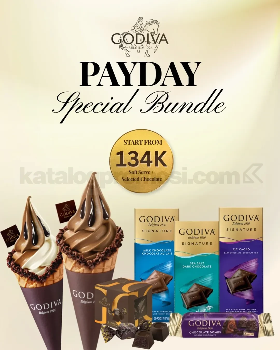 Promo Godiva Payday Special Bundle berlangsung dalam periode terbatas mengikuti momen payday, sehingga tersedia selama stok dan program masih berjalan di outlet.