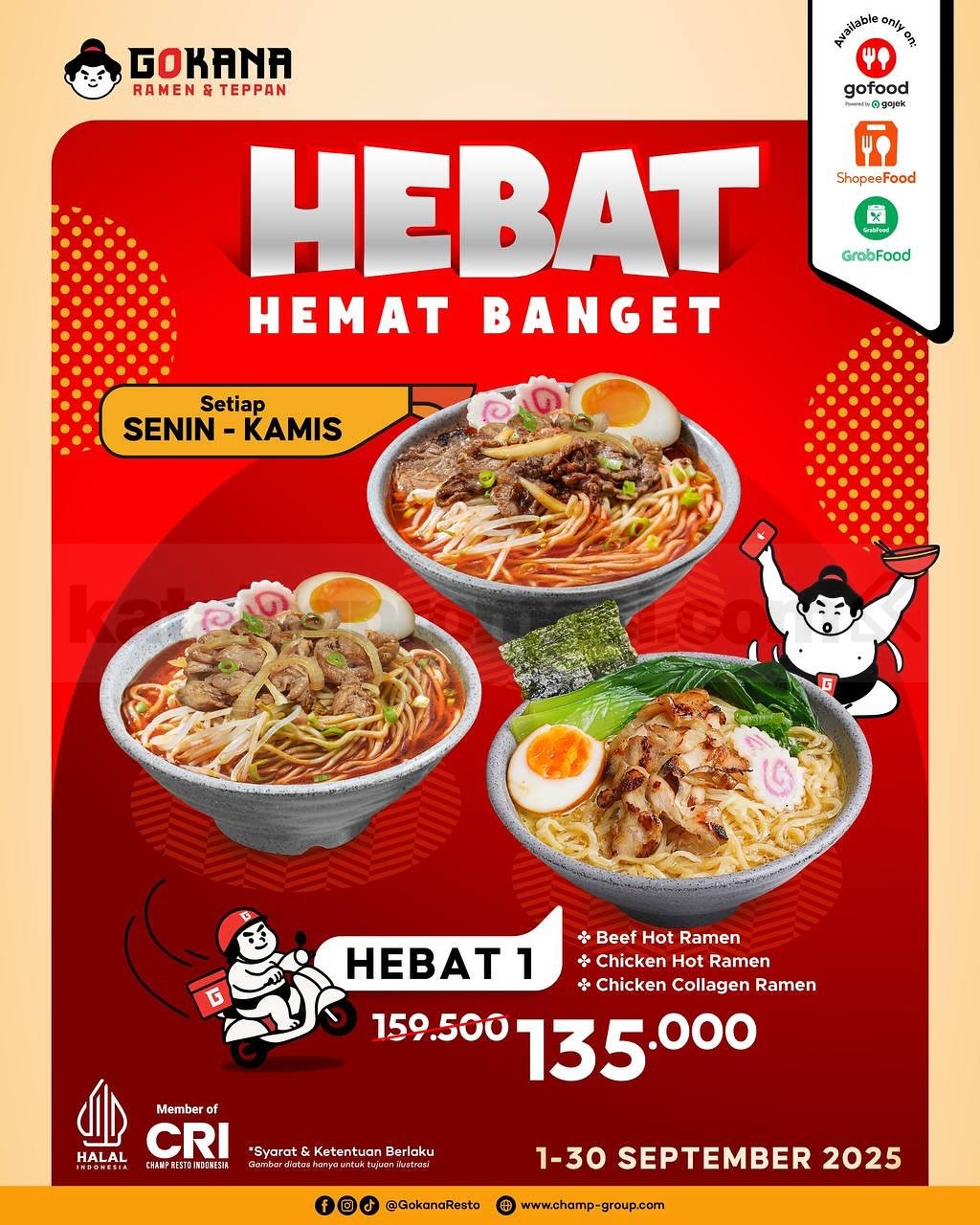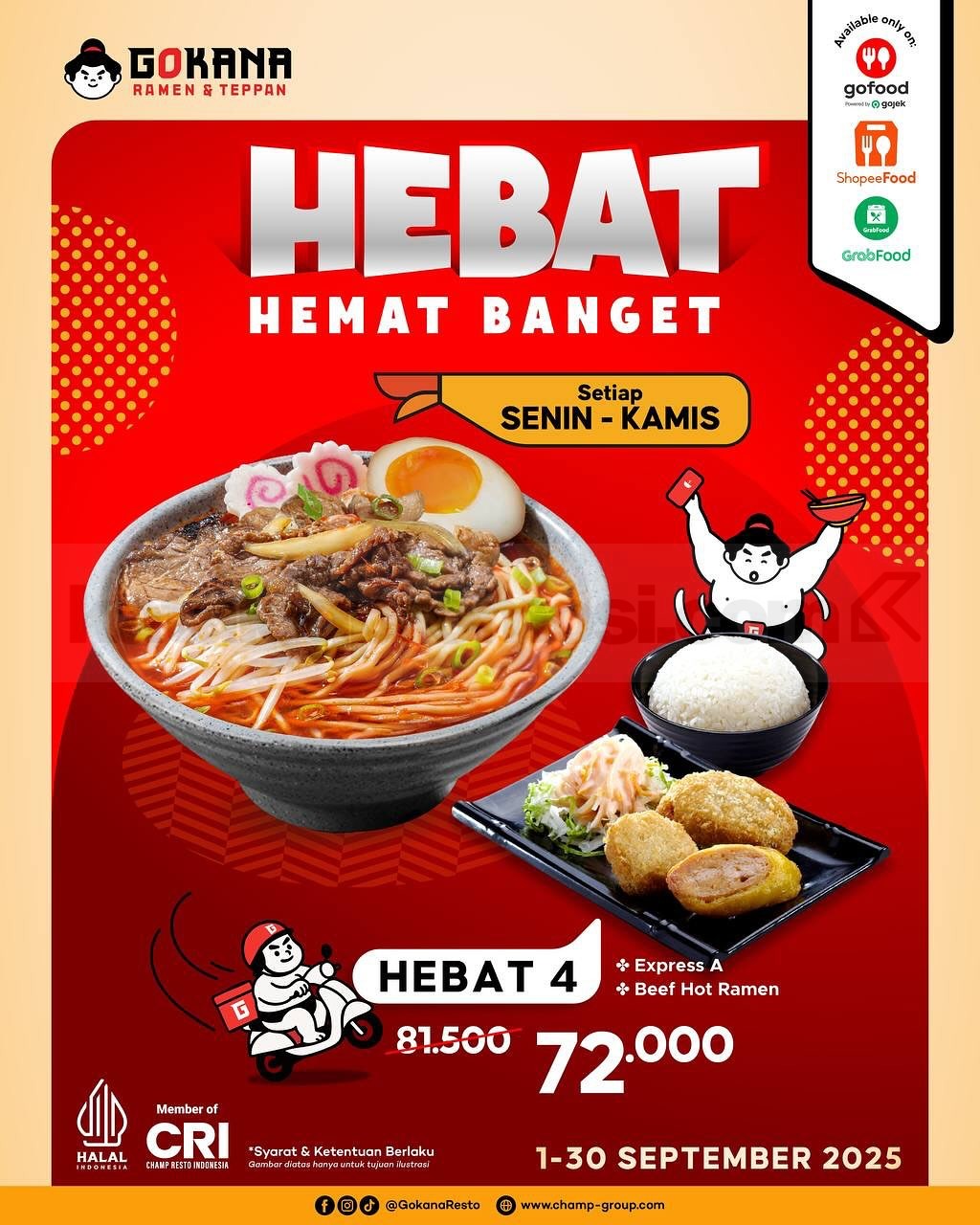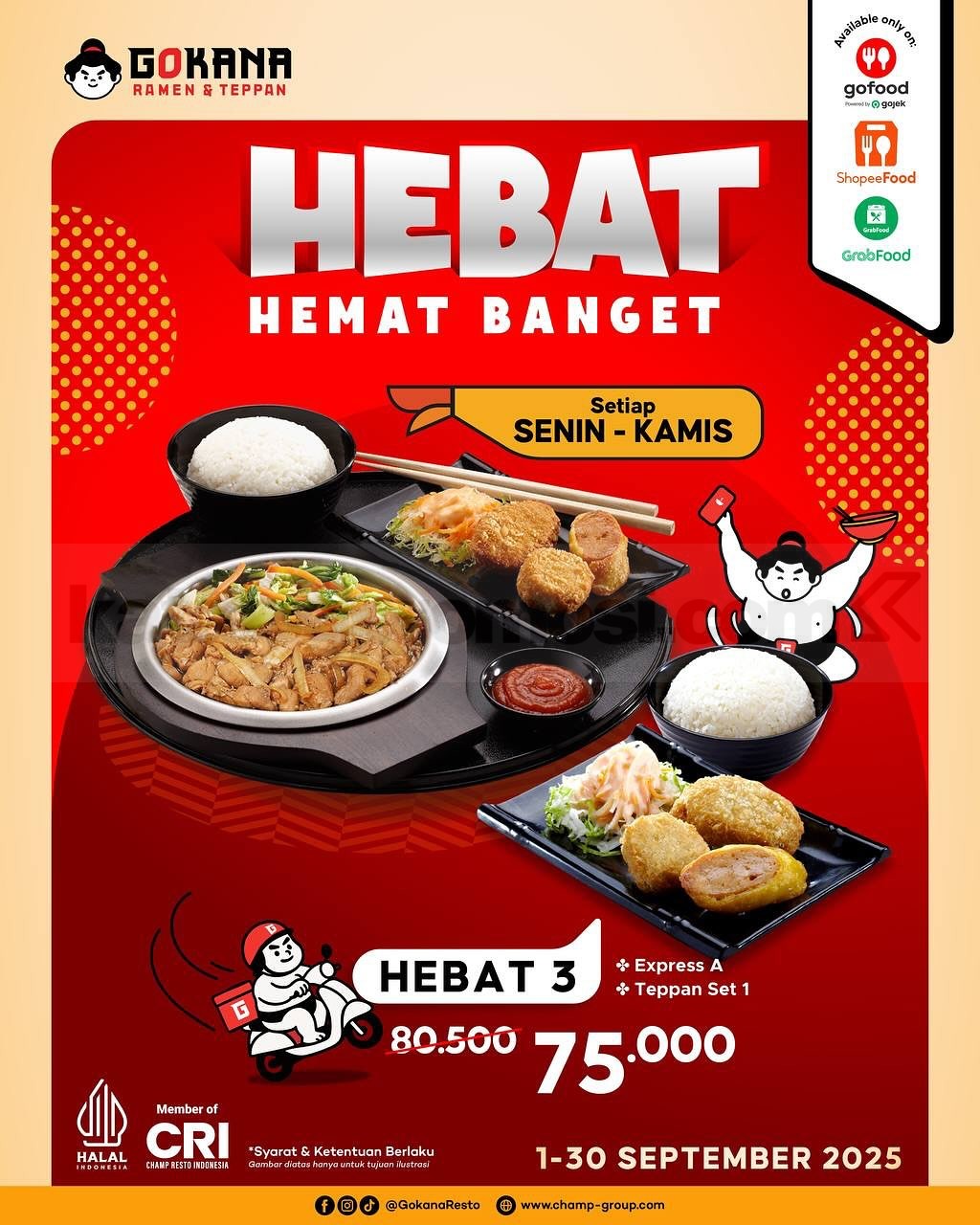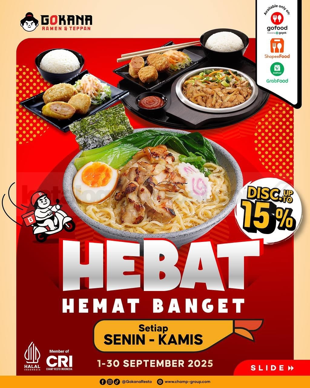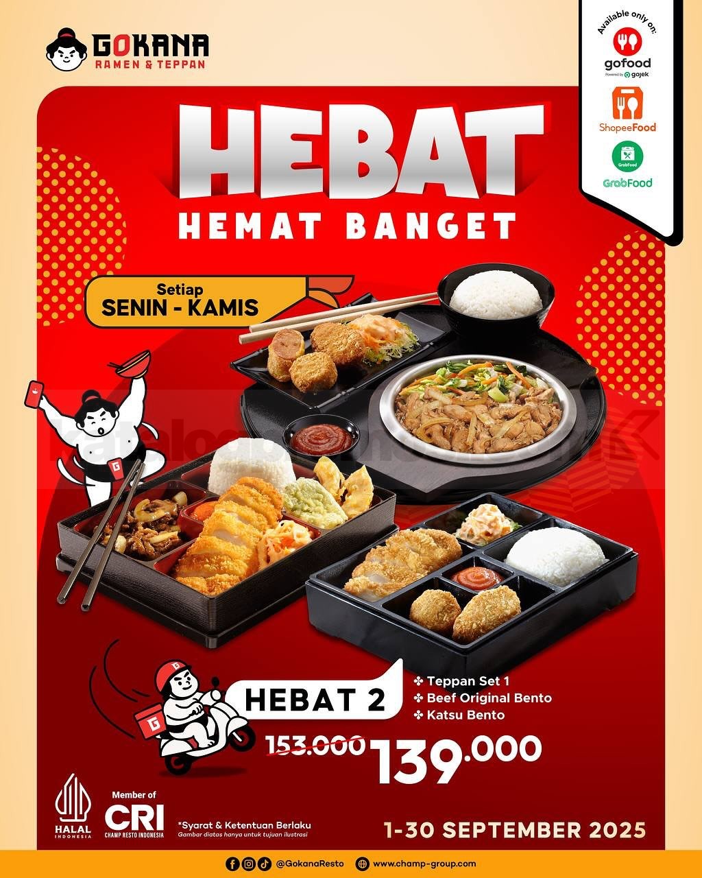 Promo Gokana HEBAT Hemat Banget hadir September 2025! Nikmati ramen, bento, teppan, hingga paket combo mulai Rp72rb via Online Delivery.
