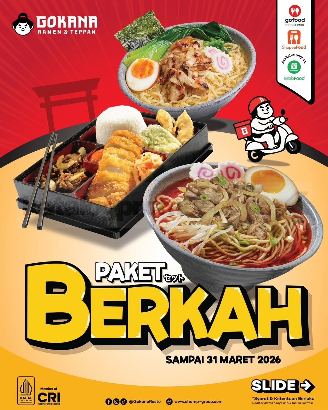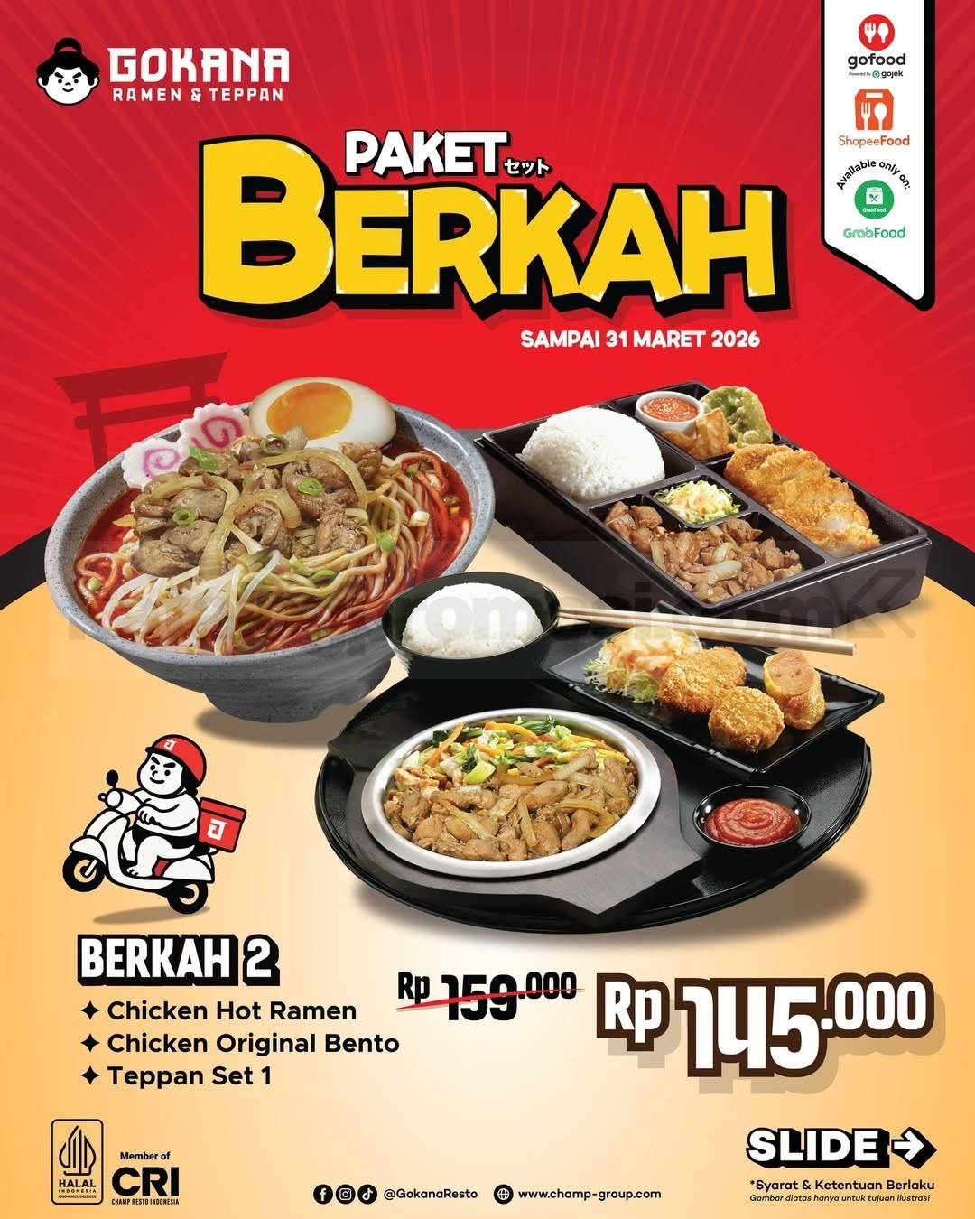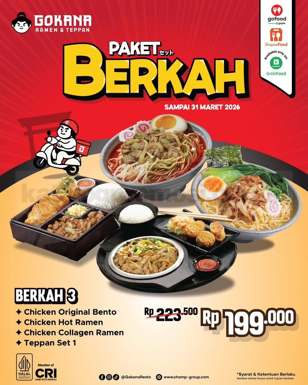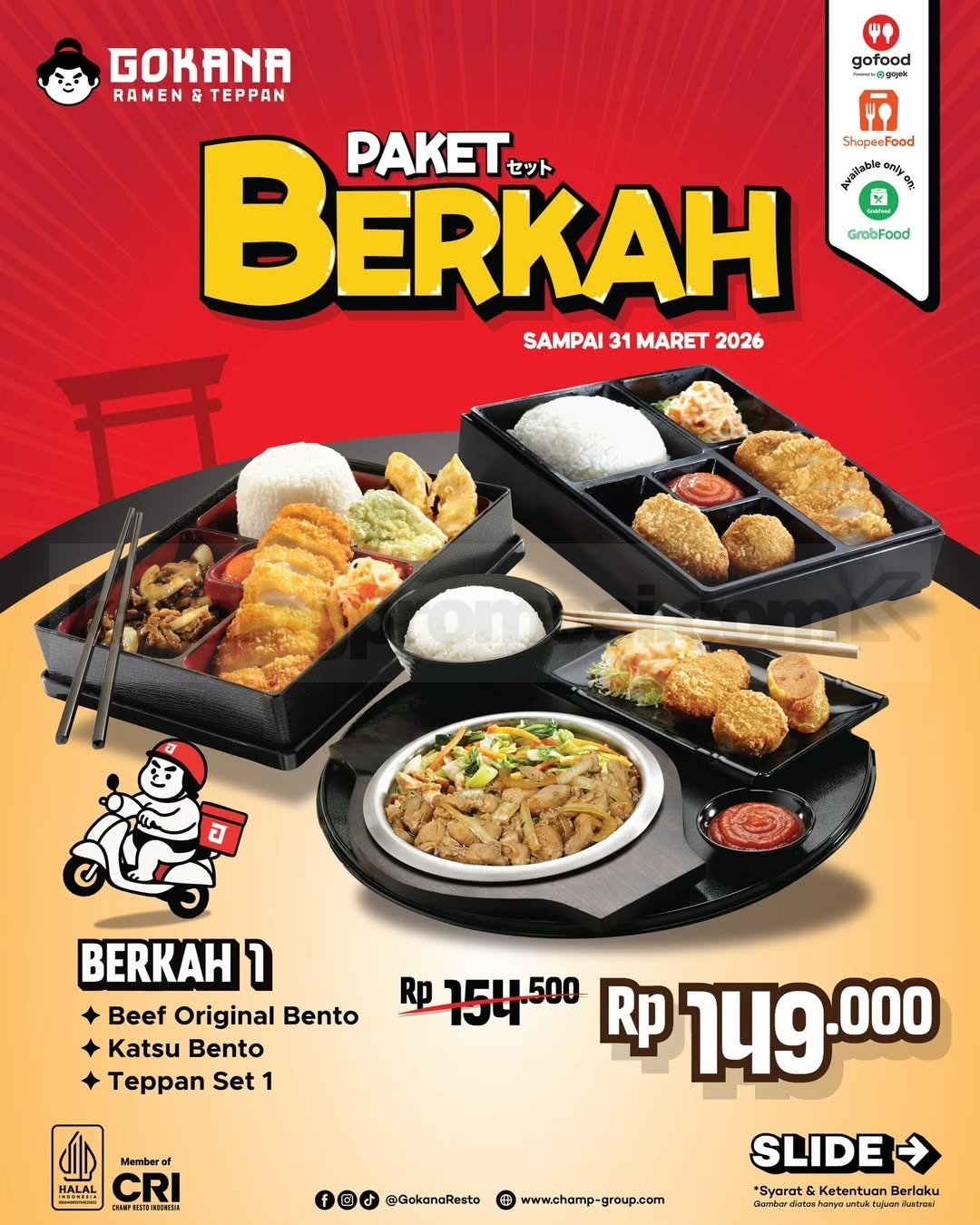 Promo Gokana Paket Berkah mulai Rp.145.000 menu Jepang untuk buka puasa via GoFood dan ShopeeFood berlaku sampai 31 Maret 2026