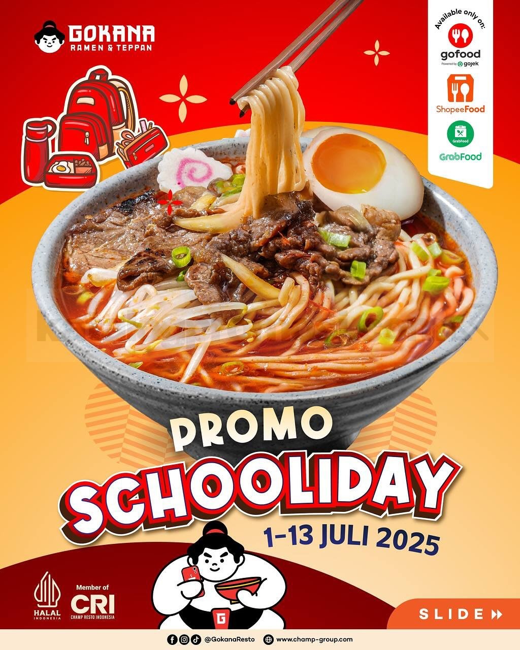 Nikmatin Promo Gokana Schooliday sekarang juga dan rasain ramen serta bento favoritmu dengan harga lebih hemat. Klik aplikasi food delivery kamu sekarang dan pesen paket promo ini biar lunch bareng temen-temen jadi makin seru 🍜🔥