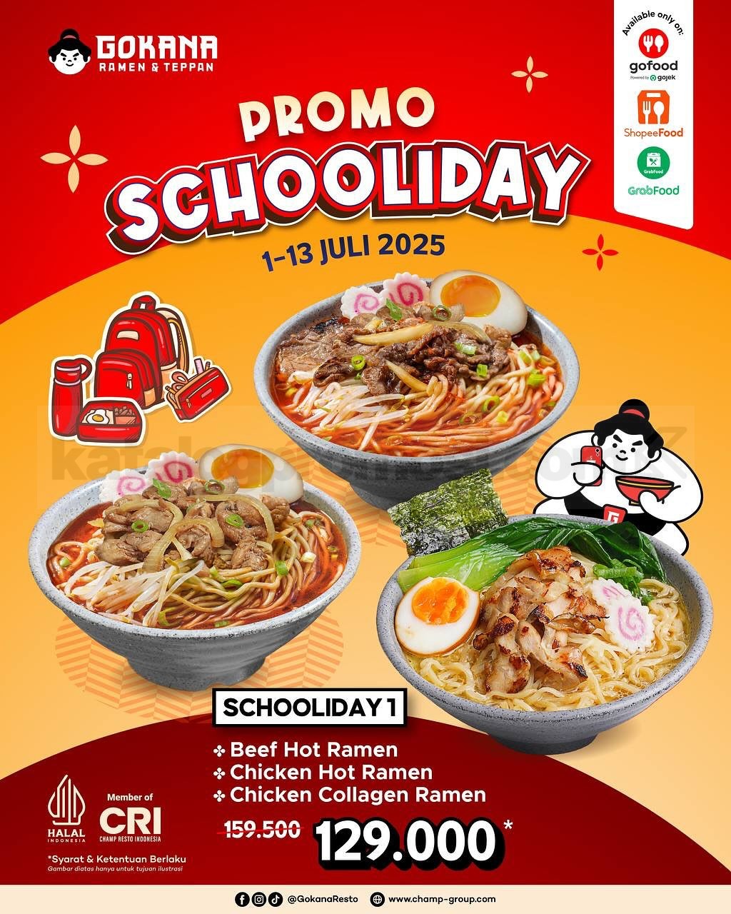 Promo Gokana Schooliday! Paket hemat ramen dan bento mulai Rp 127.000 di GoFood, GrabFood, ShopeeFood. Berlaku hingga 13 Juli 2025