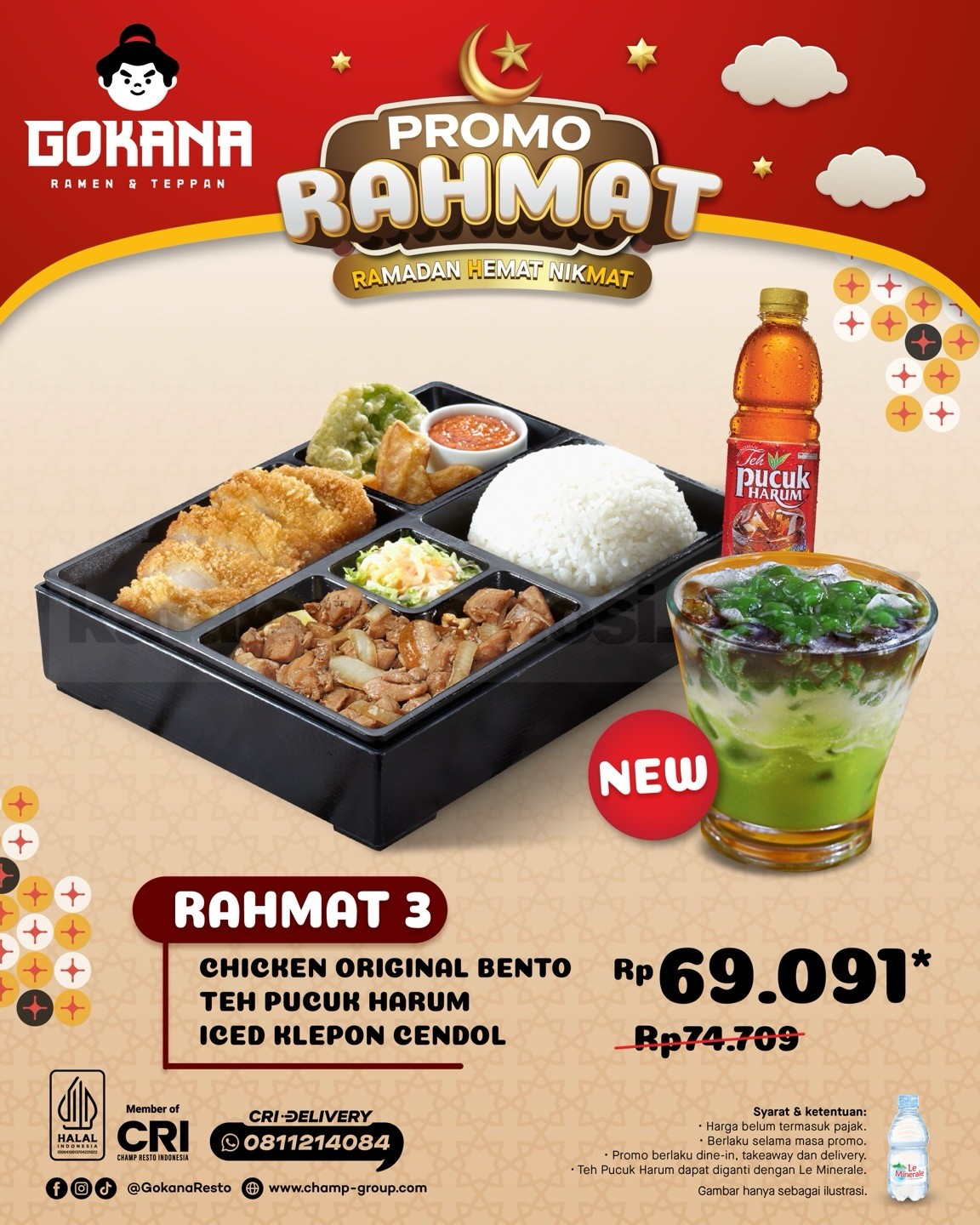 Promo GOKANA Rahmat Paket Hemat mulai Rp. 69.091 jadi pilihan pas buat kamu yang ingin buka puasa lebih praktis dan lengkap dalam satu paket. Menu best seller dari GOKANA Ramen & Teppan sudah termasuk minuman dan dessert spesial, jadi nggak perlu tambah-tambah lagi.