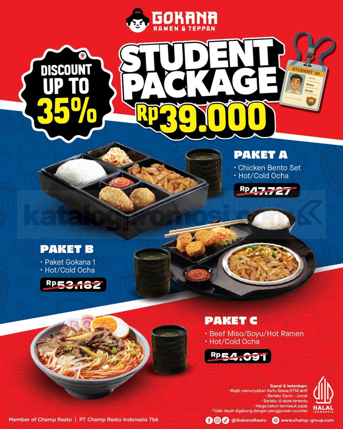 Promo berlangsung setiap hari dari 1–31 Desember 2025 dan tersedia di GOKANA Ramen & Teppan. Ada tiga pilihan paket yang bisa kamu pilih sesuai selera, masing-masing punya menu utama berbeda dengan harga promo yang lebih ringan dibanding harga coretnya.