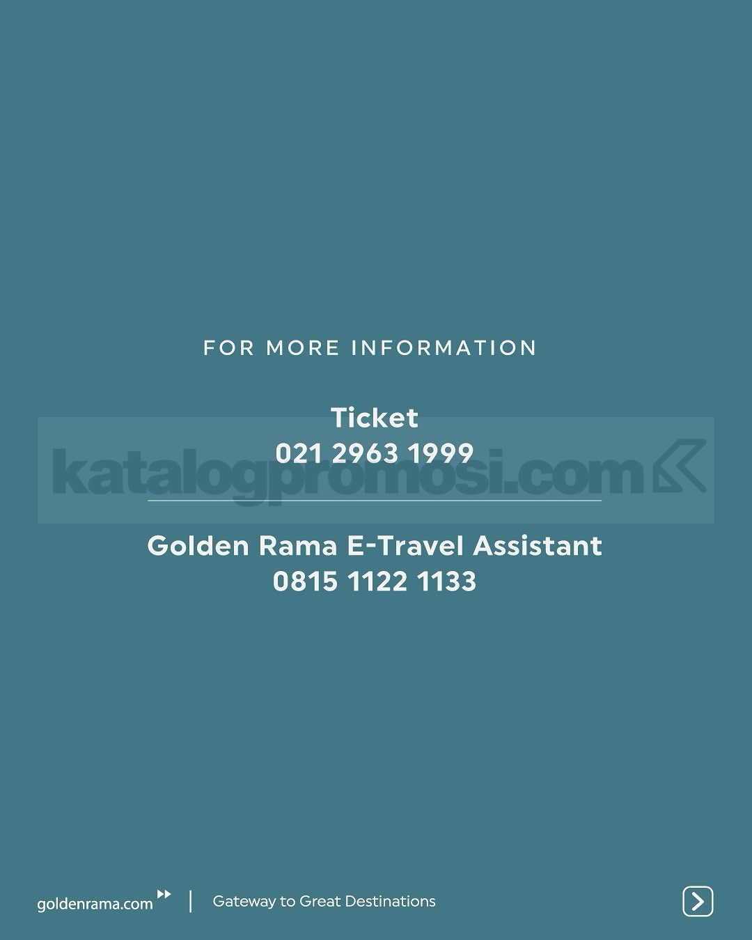 Program spesial ini cocok buat kamu yang mau rencanain liburan hemat ke destinasi luar negeri favorit. Jangan lupa catat tanggal dan segera kunjungi kantor cabang Golden Rama untuk dapatkan penawaran terbaik.