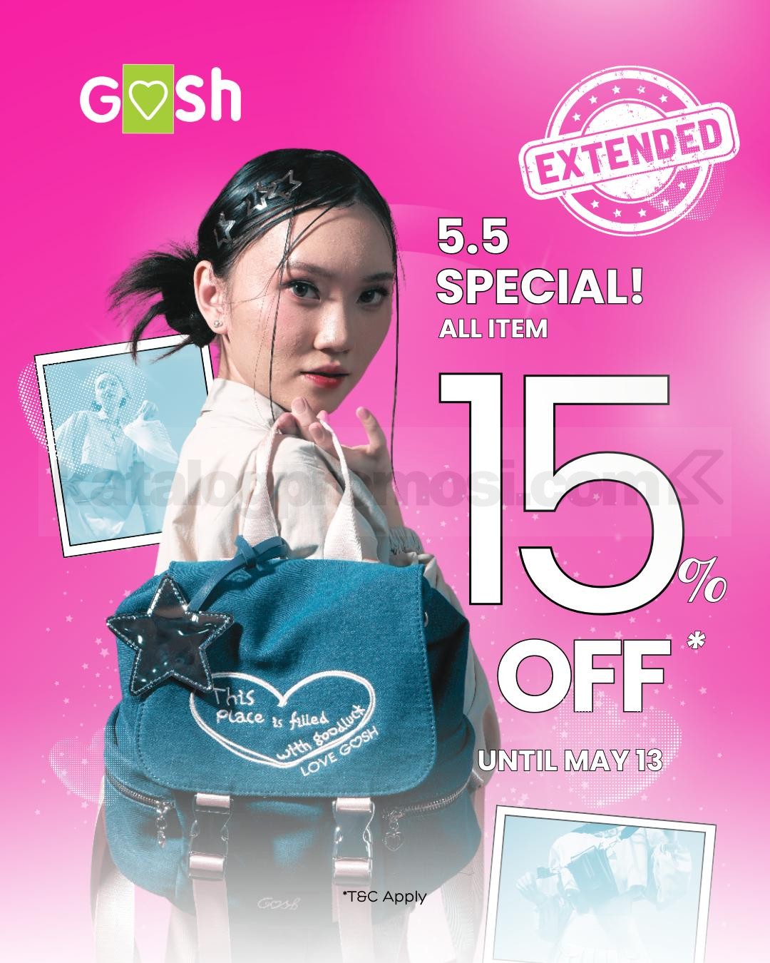 Promo ini berlaku di ALL STORE, jadi kamu tinggal datang ke GOSH terdekat dan langsung pilih produk favorit kamu. Mau sneakers? Sandals? Bags? Accessories? Itβs your call, babe! Yang penting, langsung gercep sebelum kehabisan karena promo ginian tuh hilangnya cepet banget!