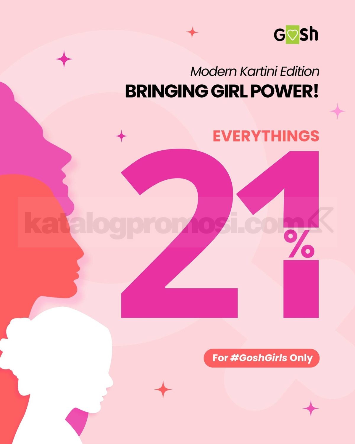 Promo Gosh Shoes Hari Kartini Diskon 21% Semua Produk hanya 1 hari, tanggal 21 April 2026 untuk pembelian langsung di seluruh store Gosh Shoes.