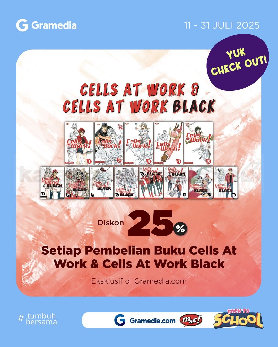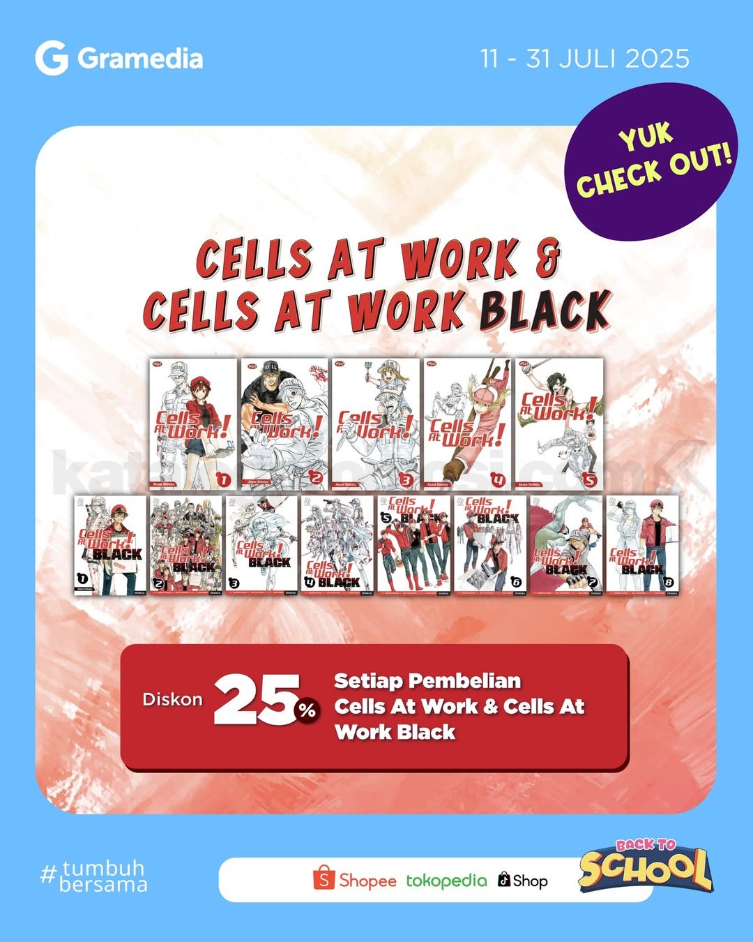 - Dapatkan Diskon spesial 25% setiap pembelian buku Cells at Work & Cells at Work Black.