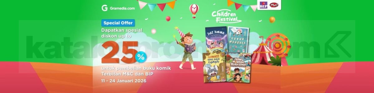 Promo ini menawarkan berbagai buku pilihan untuk anak, mulai dari buku cerita interaktif, komik terbitan M&C & BIP, hingga buku edukatif yang seru untuk waktu senggang dan liburan. Semua bisa dibeli secara online di Gramedia.com maupun di Marketplace Gramedia (Shopee, Tokopedia, Lazada, TikTok Shop).