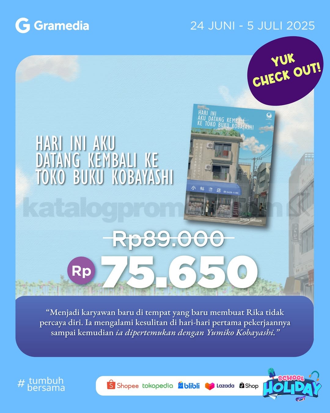 Promo Gramedia – Hari Ini Aku Datang Kembali ke Toko Buku Kobayashi Diskon 25%.