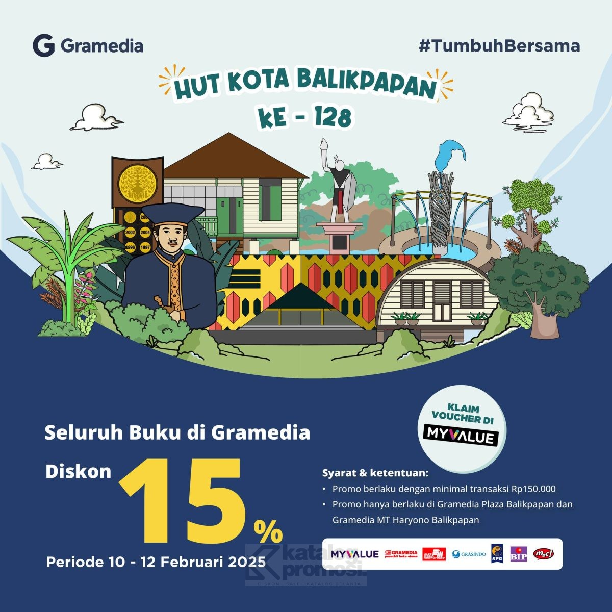 Promo Gramedia HUT Kota Balikpapan ke 128 – Diskon 15% untuk Semua Buku, berlaku mulai tanggal 10 – 12 Februari 2025