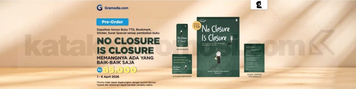 Promo Gramedia No Closure is Closure Pre Order Rp. 85.000 buku + bonus eksklusif berlaku mulai tanggal 1 April 2026 – 6 April 2026.