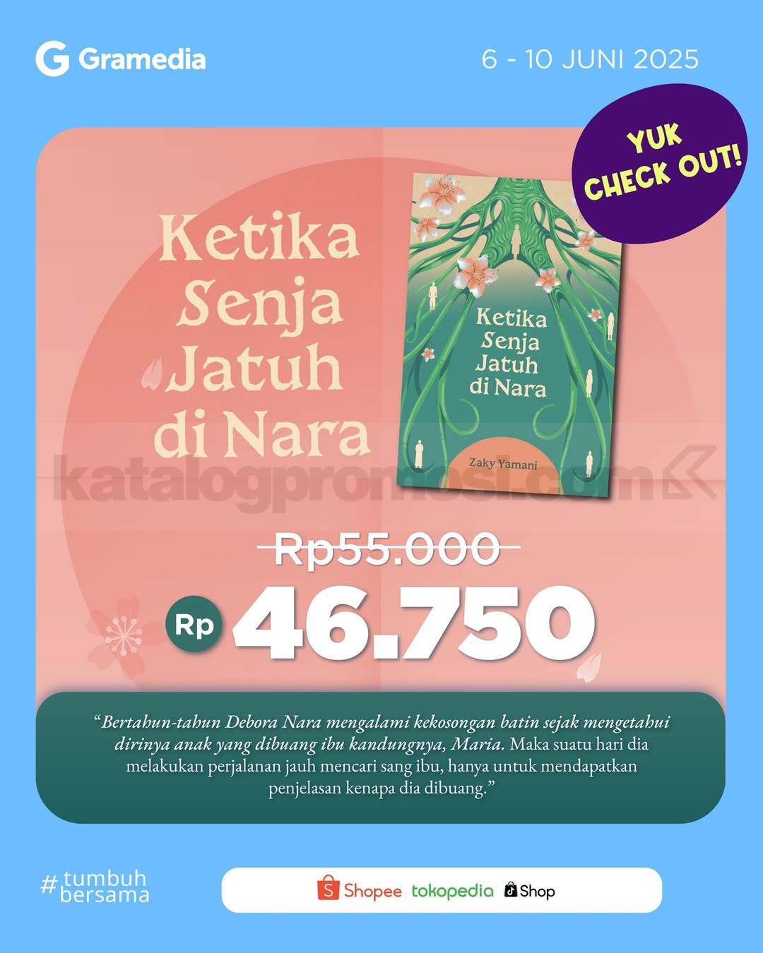 Yuk, pre order “Ketika Senja Jatuh di Nara” sekarang juga lewat promo Gramedia! Harga spesial dan stok terbatas, jangan sampai kehabisan! πβ¨ Klik dan amankan bukunya sekarang!