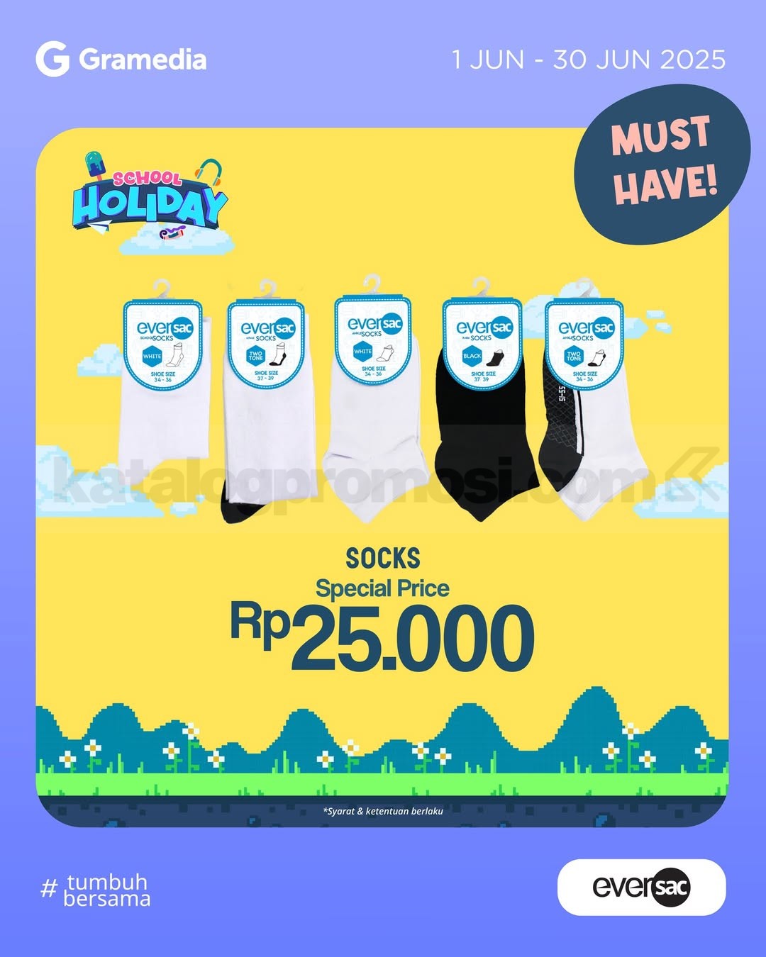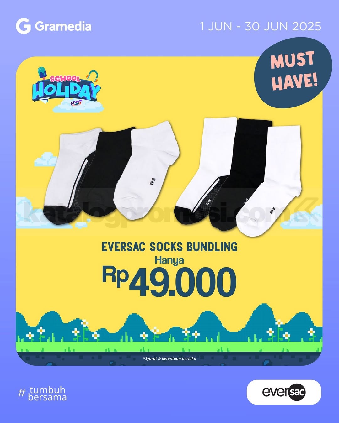 - Promo berlaku untuk semua varian kaos kaki Eversac yang tersedia di Gramedia.