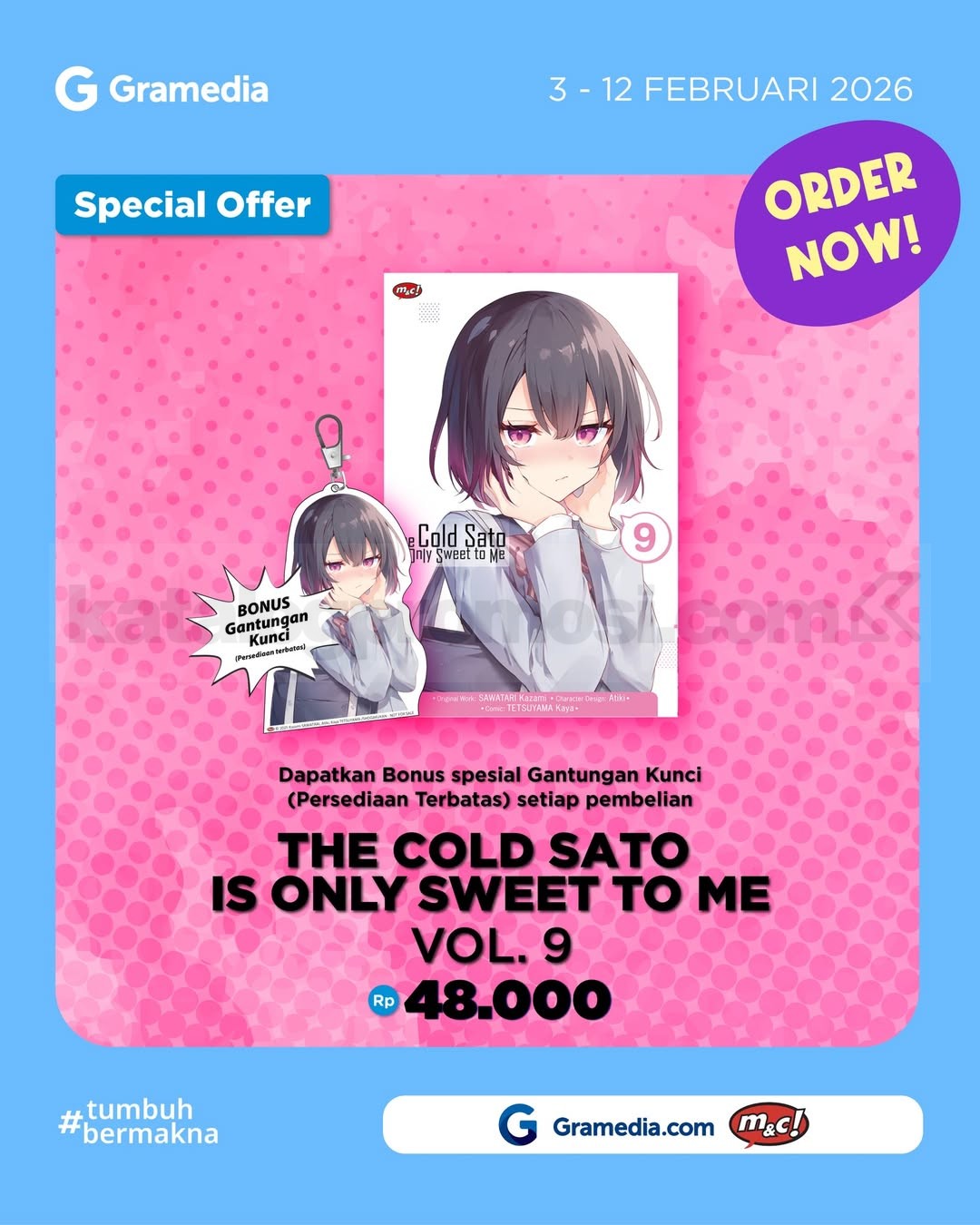 Melalui promo ini, pembaca bisa menikmati kelanjutan kisah The Cold Sato Vol. 9 sekaligus membawa pulang gantungan kunci eksklusif yang cocok jadi pelengkap koleksi. Kalau kamu mengikuti ceritanya dari awal, promo ini sayang banget dilewatkan.