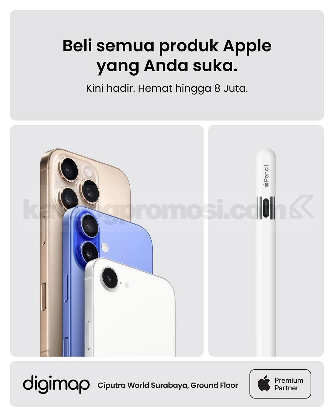 Promo DIGIMAP HUT BNI 79! Diskon iPhone dan produk Apple hingga Rp1.000.000 untuk transaksi pakai Kartu Debit & Kredit BNI, berlaku 07-21 Juli 2025