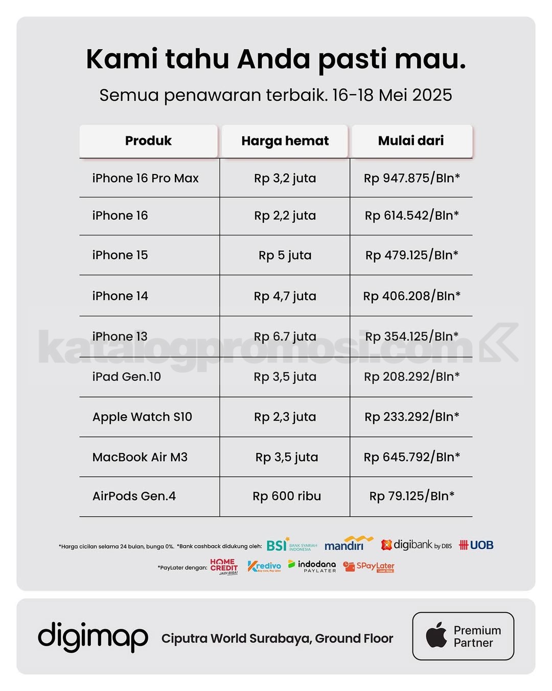 - Berlaku cicilan 0% tenor 3 & 6 bulan