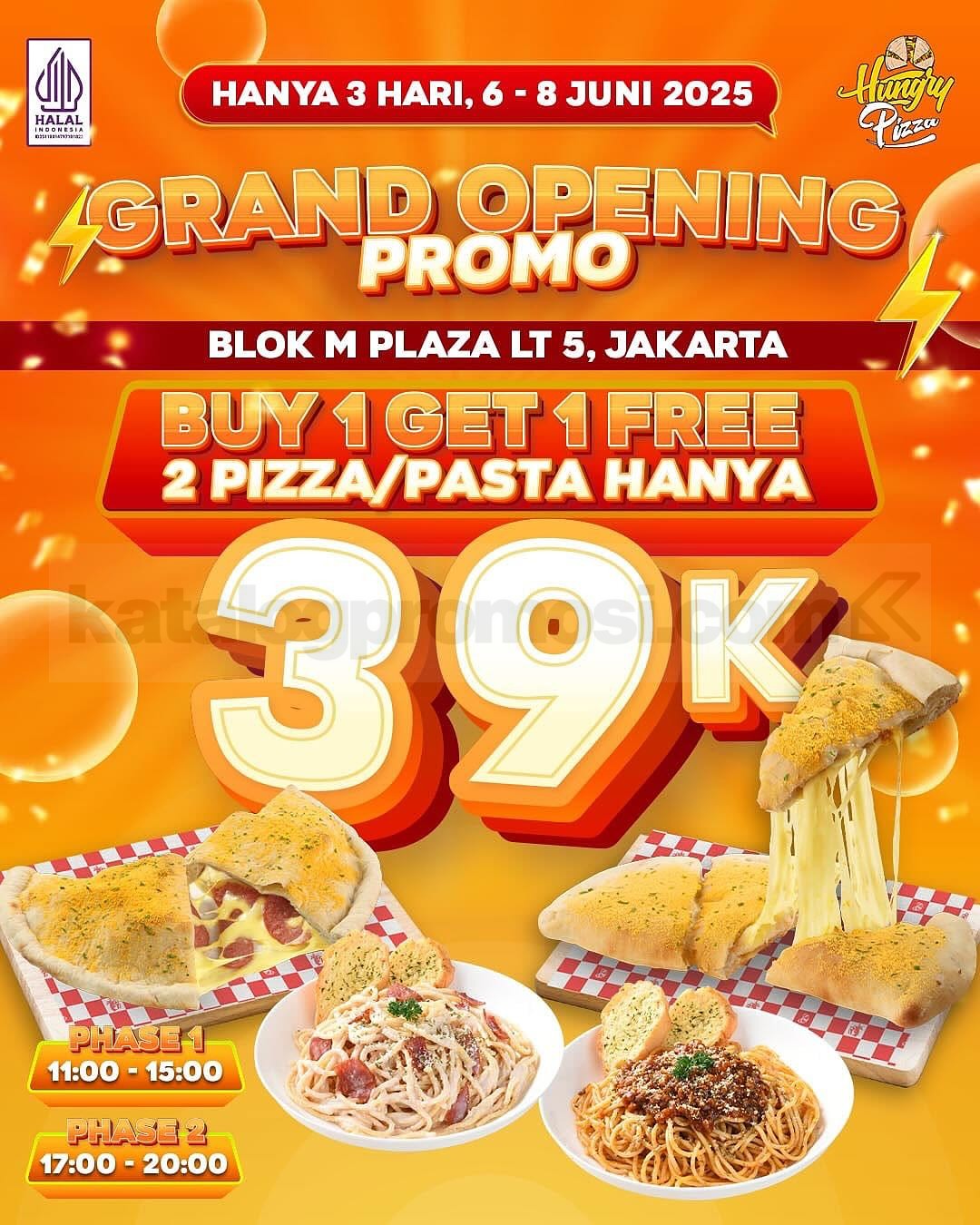 Yuk, langsung cus manfaatin Promo Hungry Pizza Royal Anniversary Flash Sale Buy 1 Get 1 Free ini! Jangan tunggu sampai kehabisan, ajak temen atau keluarga buat makan bareng dan dapetin pizza ekstra gratis yang super lezat. Buruan, tanggalnya cuma sebentar, jamnya juga singkat! Gaskeun! ππ₯π
