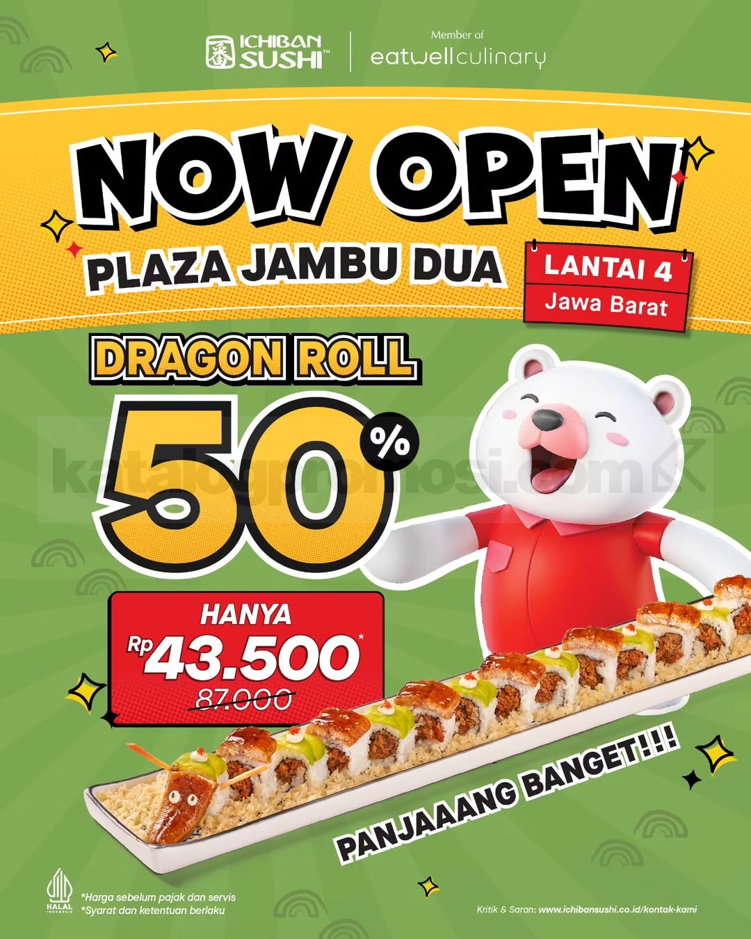👉 Cek gambar Promo Ichiban Sushi Opening Tangerang Dragon Roll Diskon 50% di bawah ini untuk lihat detail visual promo yang bikin makin lapar 🍣