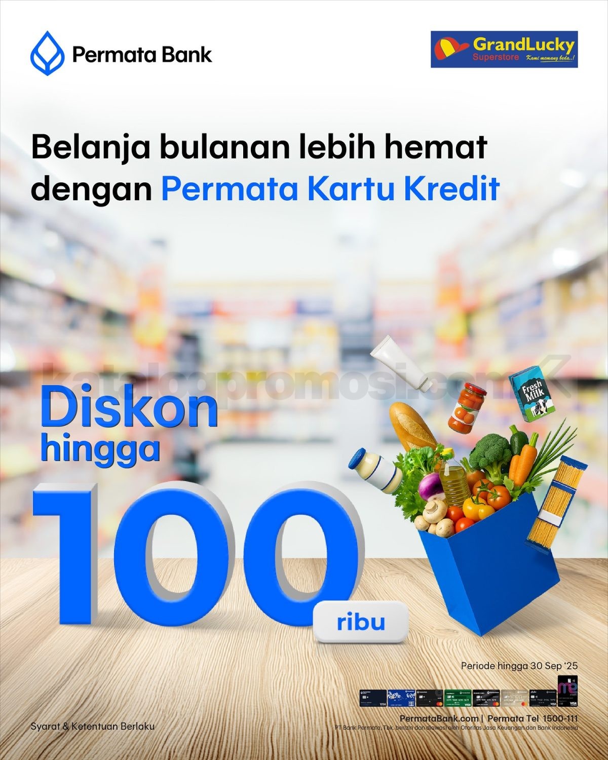 Promo GrandLucky potongan hingga Rp100 ribu dengan Permata Kartu Kredit, berlaku sampai 30 September 2025 di semua outlet GrandLucky.