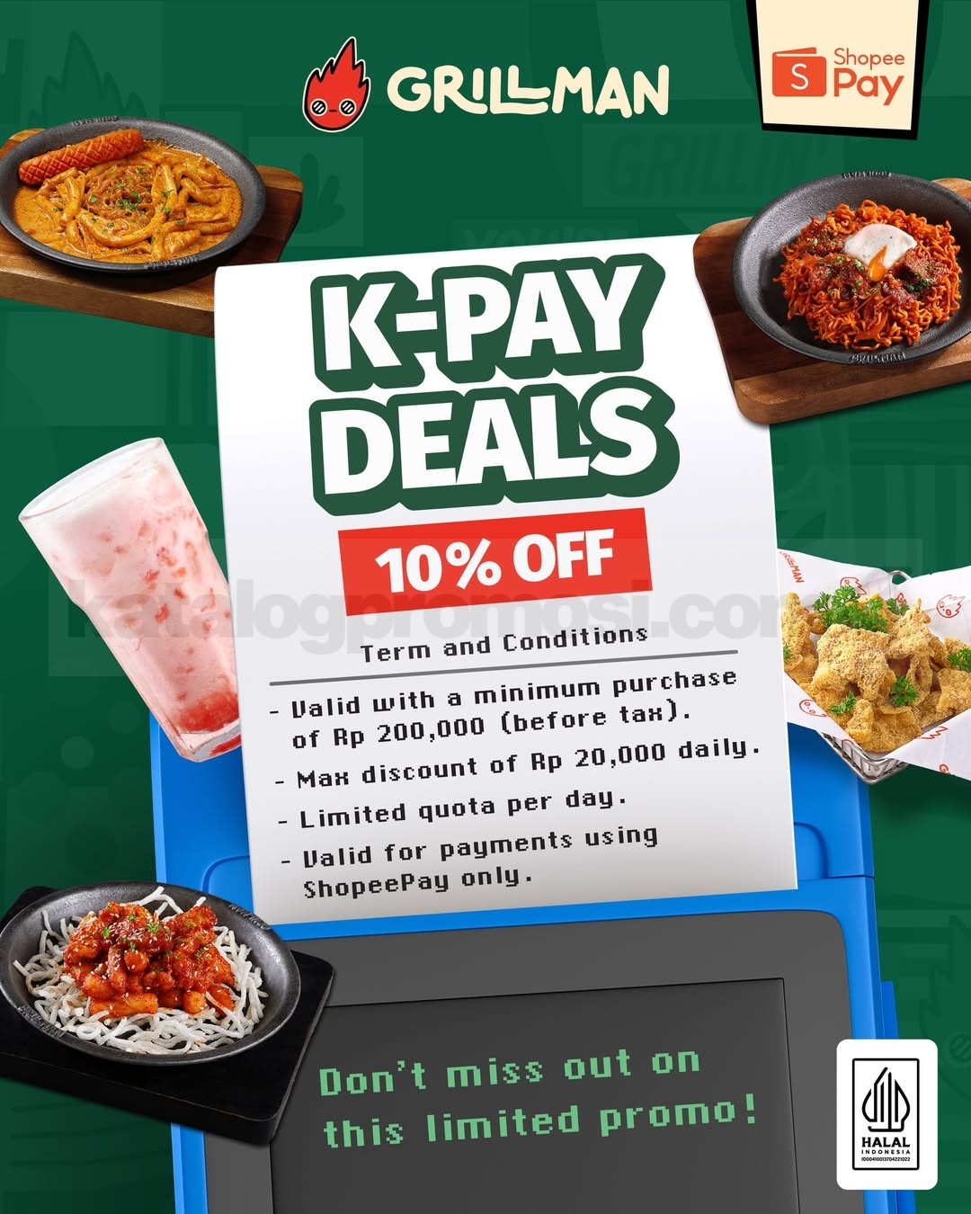 Promo GRILLMAN K-Pay Deals diskon 10% ShopeePay min. Rp200.000 berlaku selama kuota tersedia di lokasi tertentu
