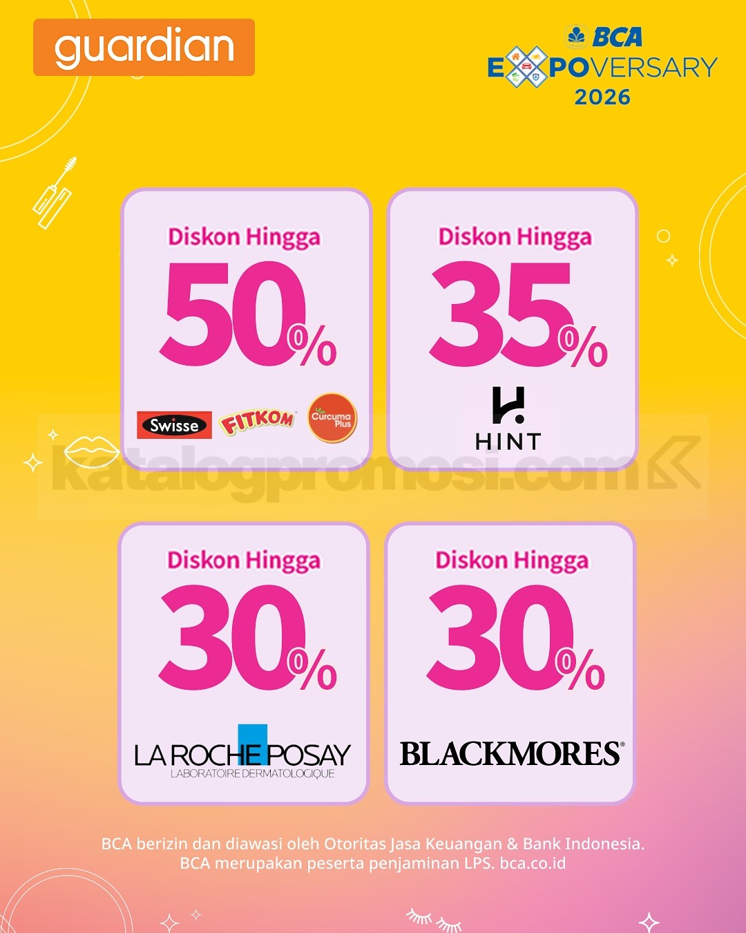Coba langsung promo Guardian BCA Expoversary 2026 dan nikmati produk kesehatan & kecantikan terbaik sambil hemat!