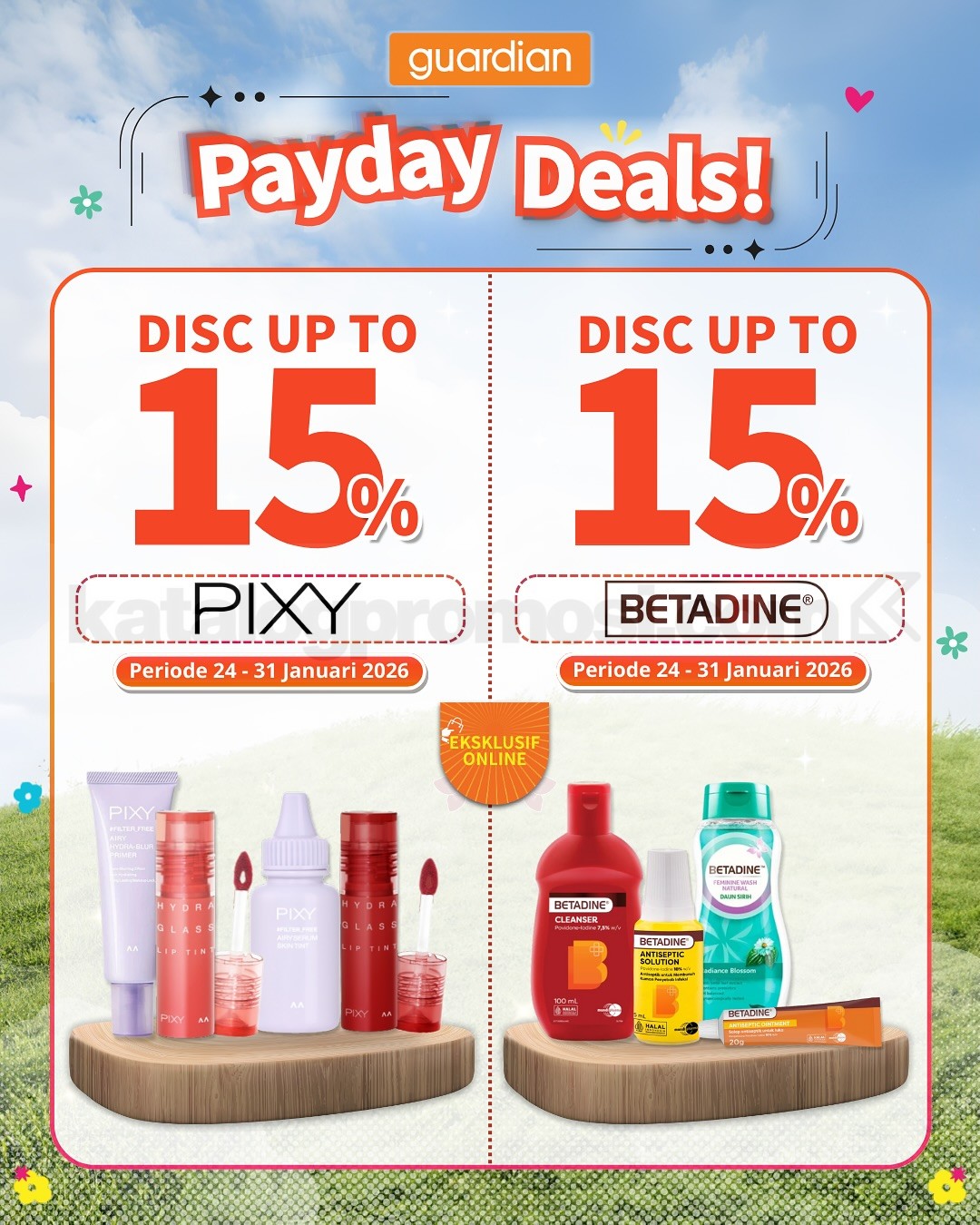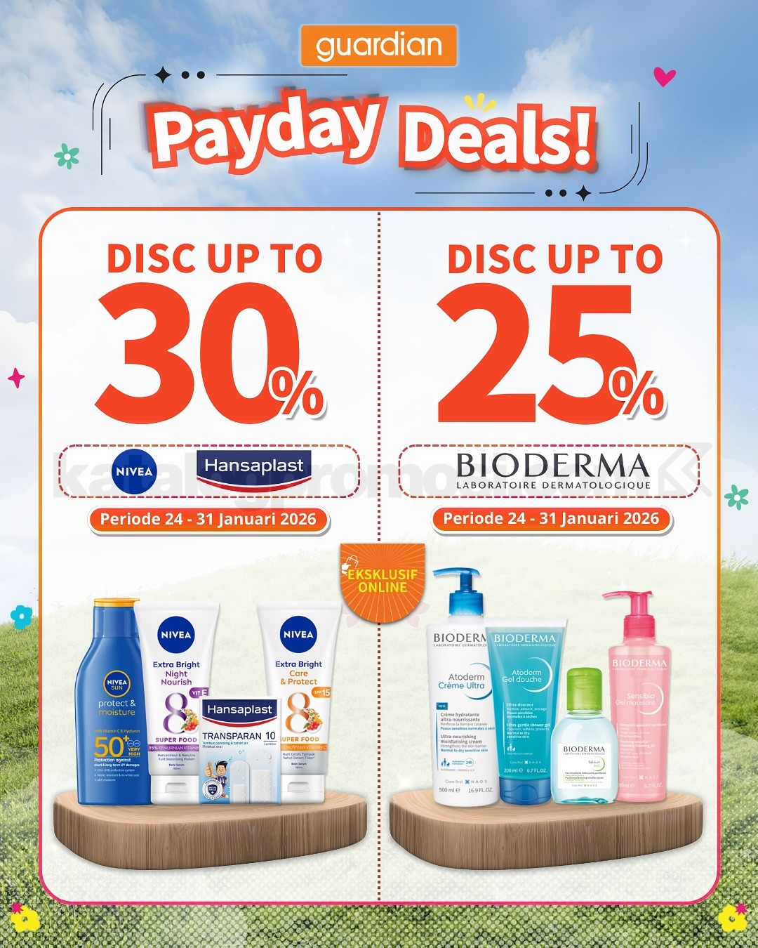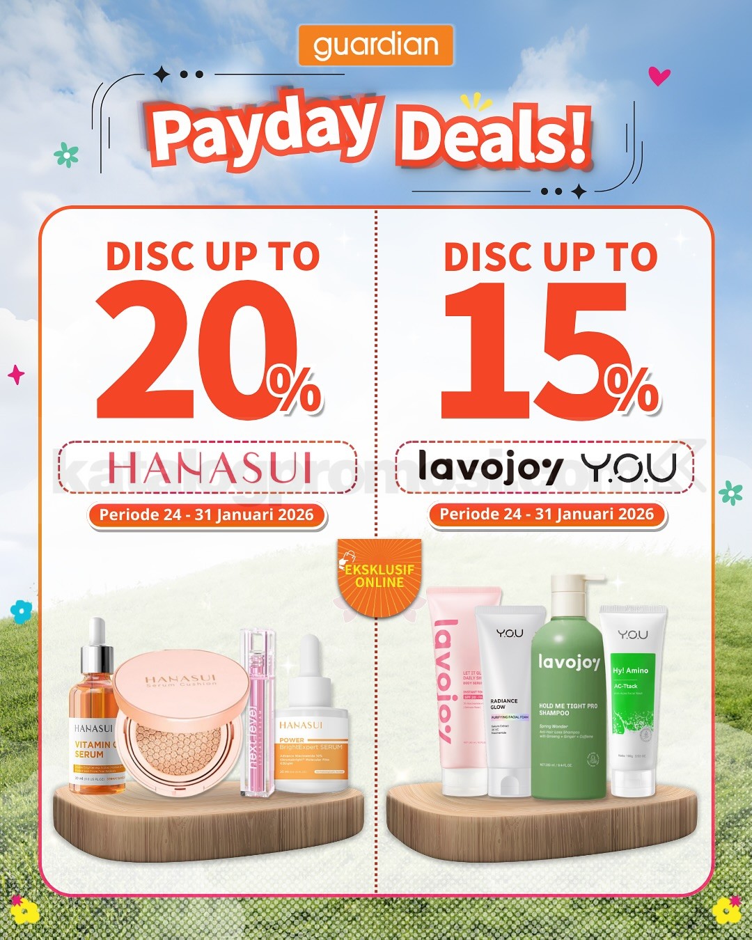 Promo hanya berlaku untuk pembelian online di Guardian ID, TikTok Shop, Shopee, dan Tokopedia.
