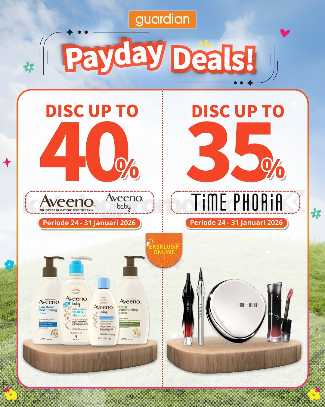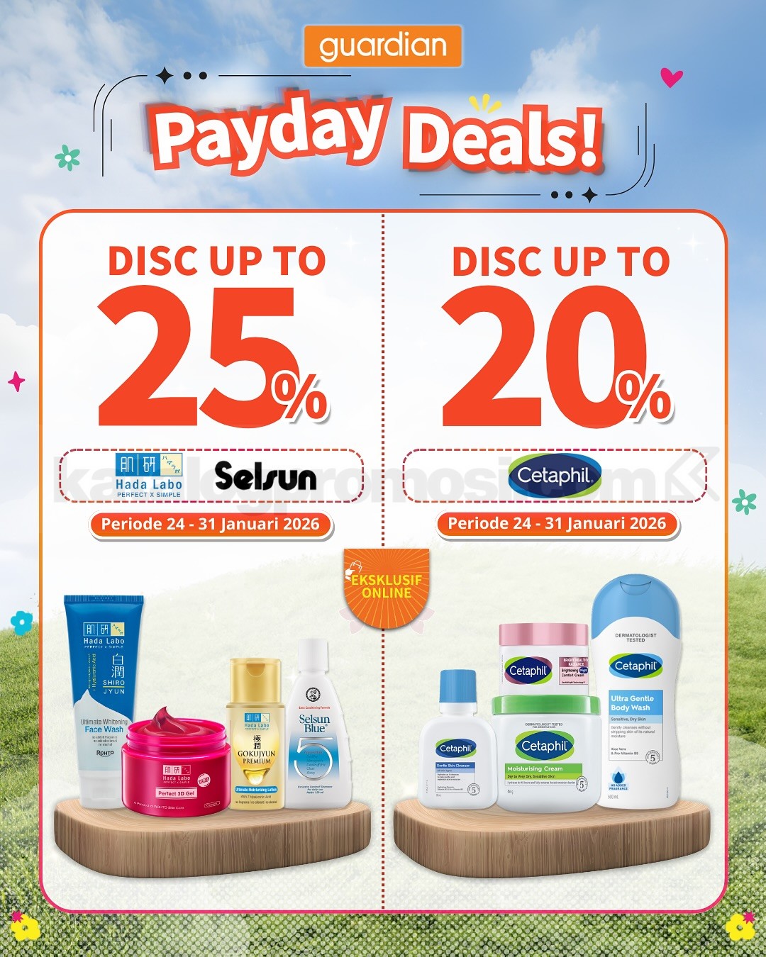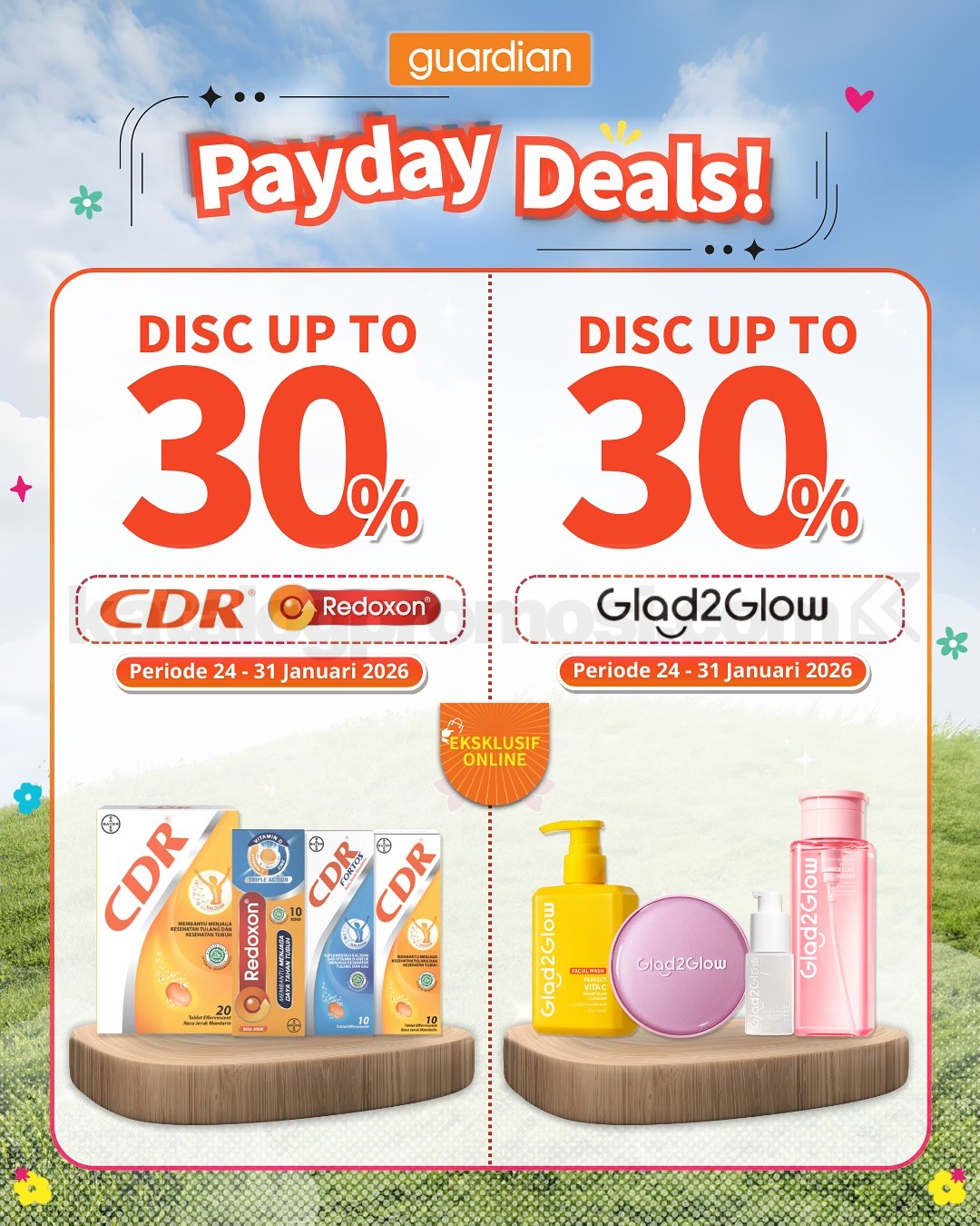 Promo hanya berlaku untuk pembelian online di Guardian ID, TikTok Shop, Shopee, dan Tokopedia.