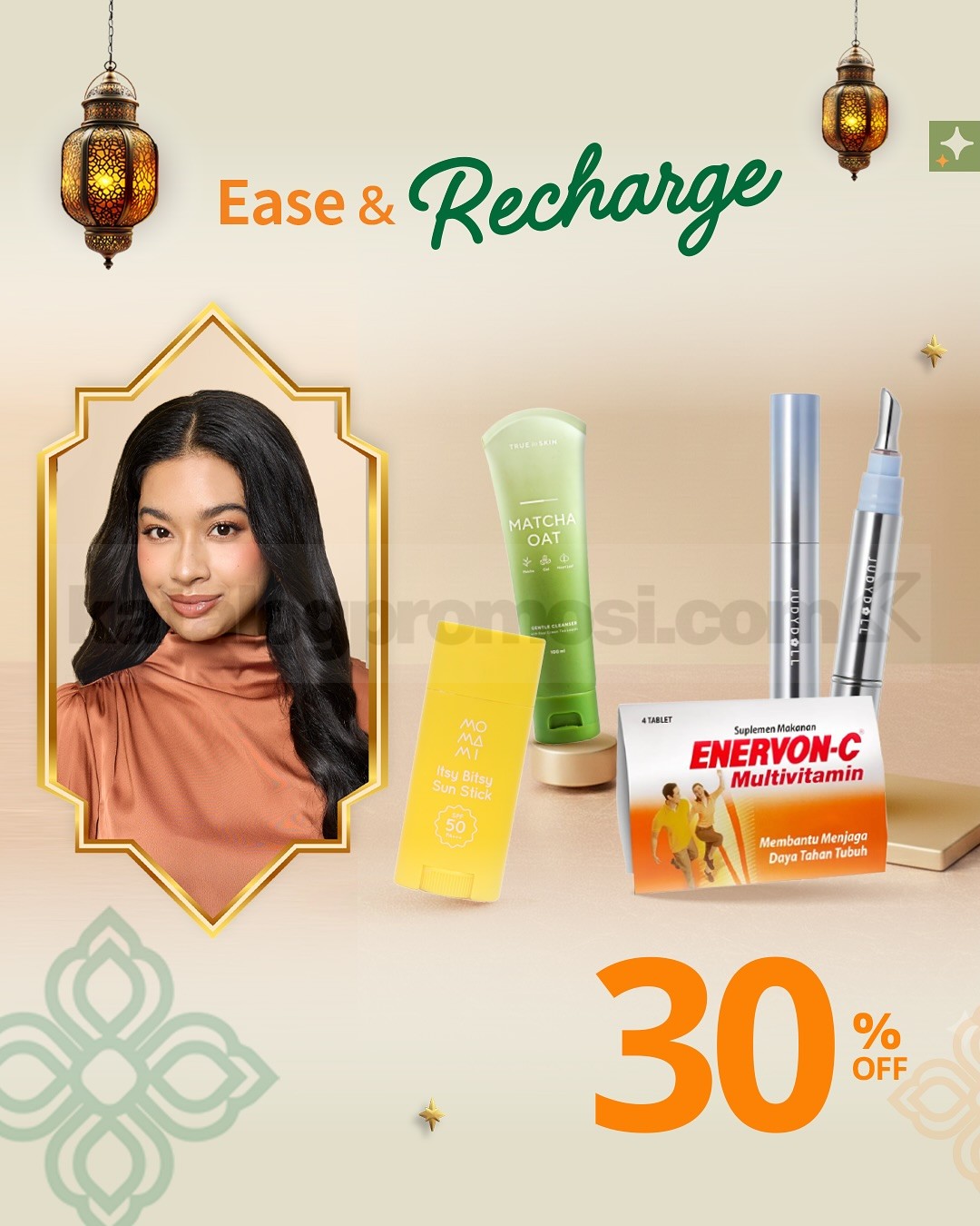 Nikmati kemudahan menjaga kesehatan dan penampilan dengan promo yang menghadirkan diskon 30% untuk berbagai produk favorit. Mulai dari skincare dan kosmetik dari brand ternama, produk perawatan pribadi seperti sabun, shampoo, dan pasta gigi, hingga vitamin dan suplemen untuk menjaga stamina selama puasa. Semua bisa kamu dapatkan dengan harga lebih hemat.