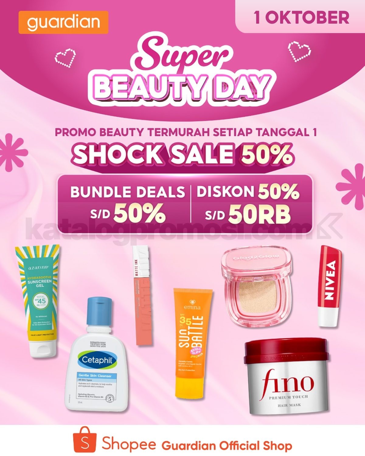 Promo Guardian Shopee Super Beauty Day diskon hingga 50% berlaku 1 Oktober 2025 di Shopee Guardian Official dengan shock sale & bundle deals.
