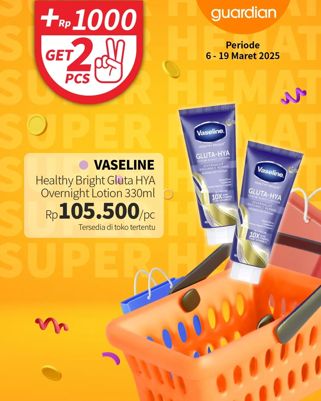 Yuk, buruan cek produk-produk yang lagi promo di Guardian dengan penawaran seru: Promo Guardian Tambah 1000 Dapat 2! Mulai dari kosmetik, skincare, hingga produk kesehatan, semua bisa kamu dapatkan dengan tambah Rp 1.000 saja, sudah bisa bawa pulang 2 pcs! 🛍️