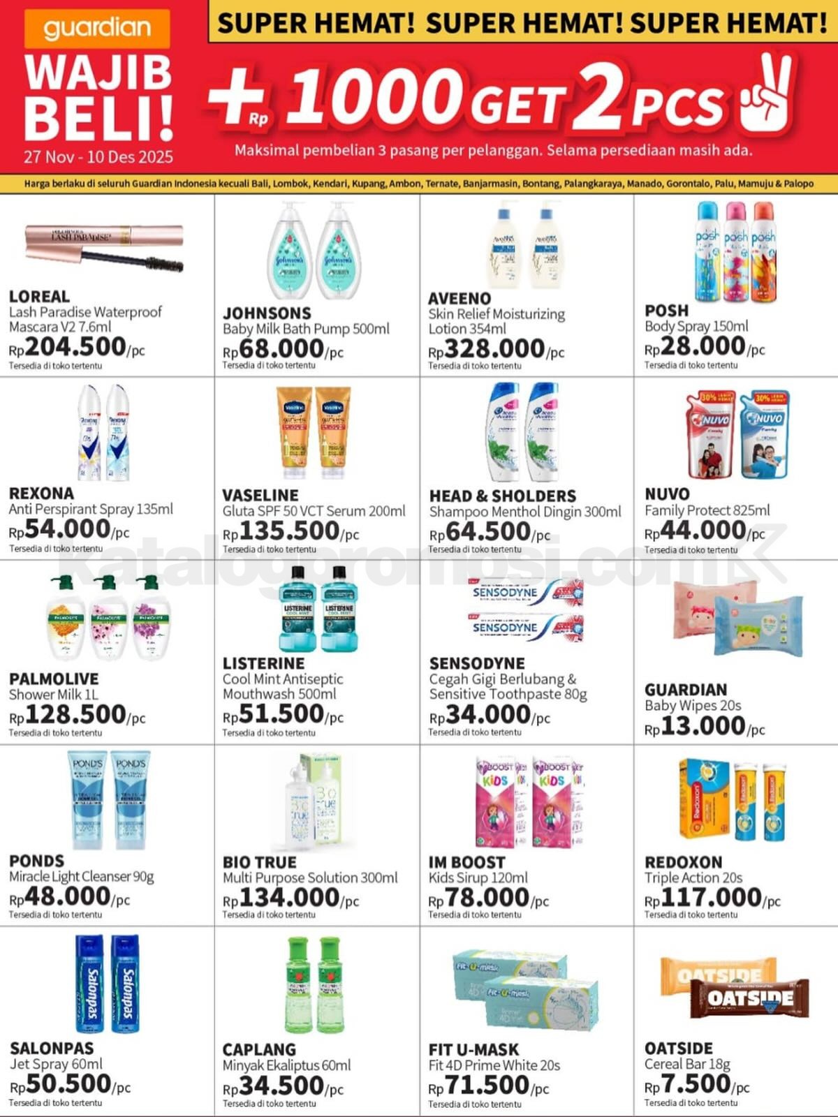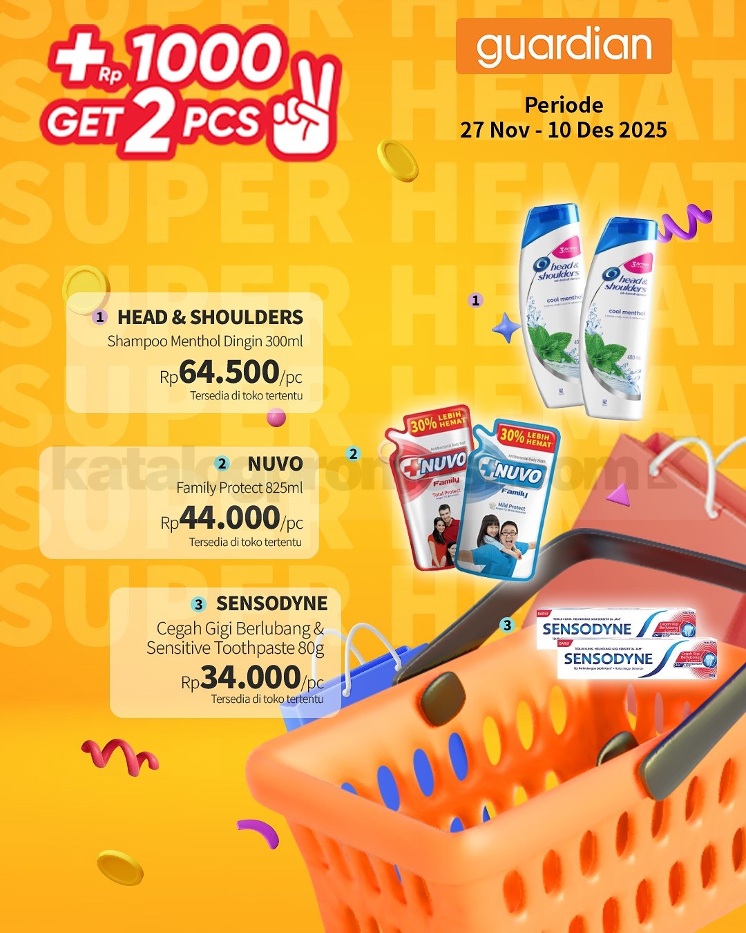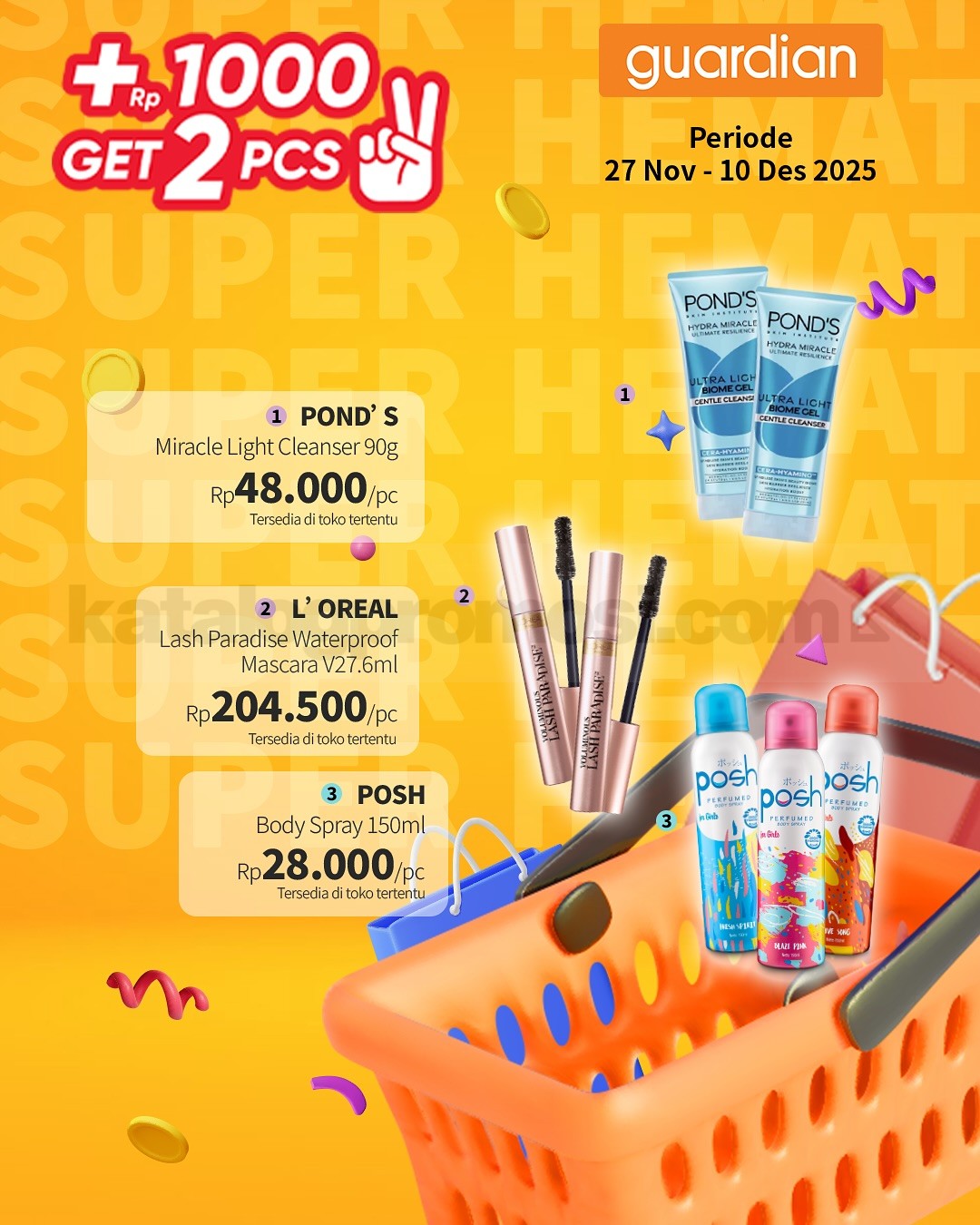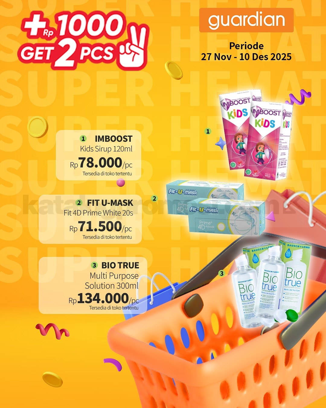 PROMO GUARDIAN SUPER HEMAT MINGGUAN – TAMBAH +Rp. 1.000 DAPAT 2 PRODUK berlaku hanya di tanggal 27 November – 10 Desember 2025