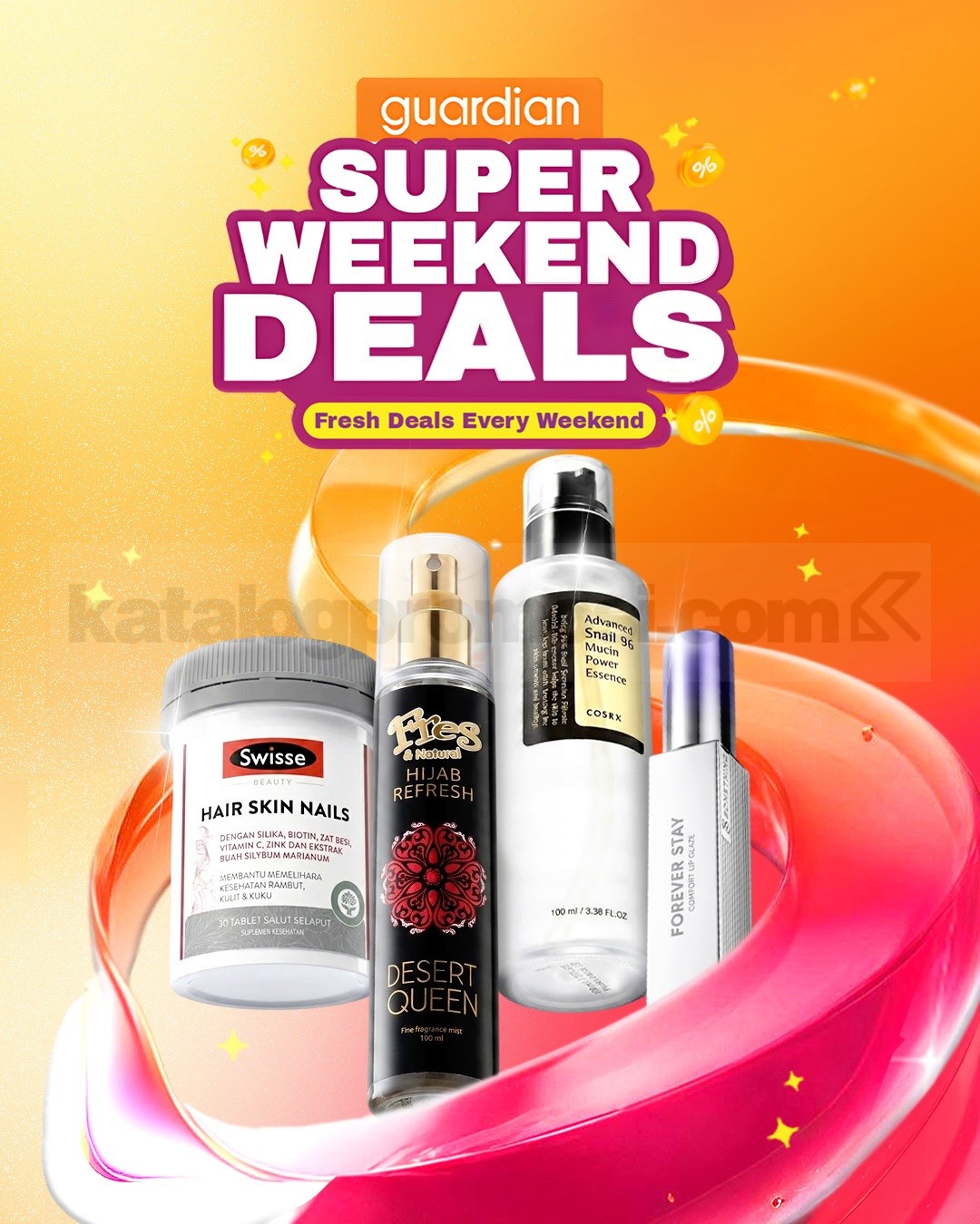 Promo tersedia di toko Guardian yang menjalankan program Super Weekend Deals serta platform resmi seperti aplikasi Guardian ID dan marketplace official store Guardian.