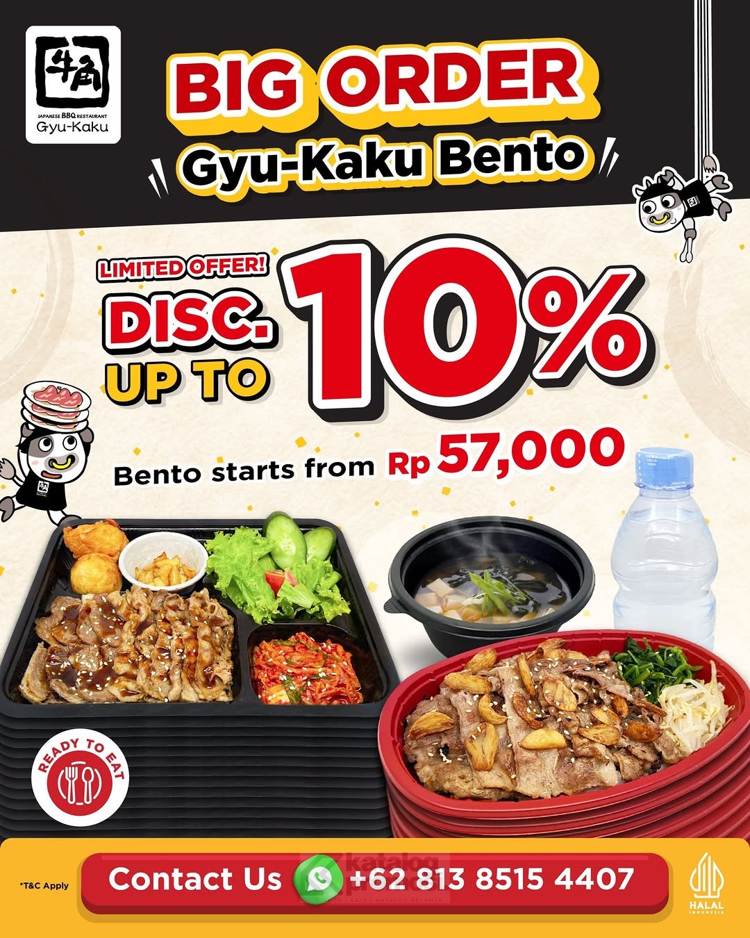 Selain buffet lengkapnya, ada penawaran tambahan berupa promo diskon 10% untuk pembelian 6 pax Kiwami Buffet dengan ketentuan lokasi dan waktu tertentu. Promo ini berlaku pada 1–4 Desember 2025, khusus hari Senin–Jumat pukul 14.00–17.00. Penawaran ini hanya tersedia di beberapa outlet Gyu-Kaku pilihan, sehingga perlu dipastikan terlebih dahulu agar tidak salah lokasi.
