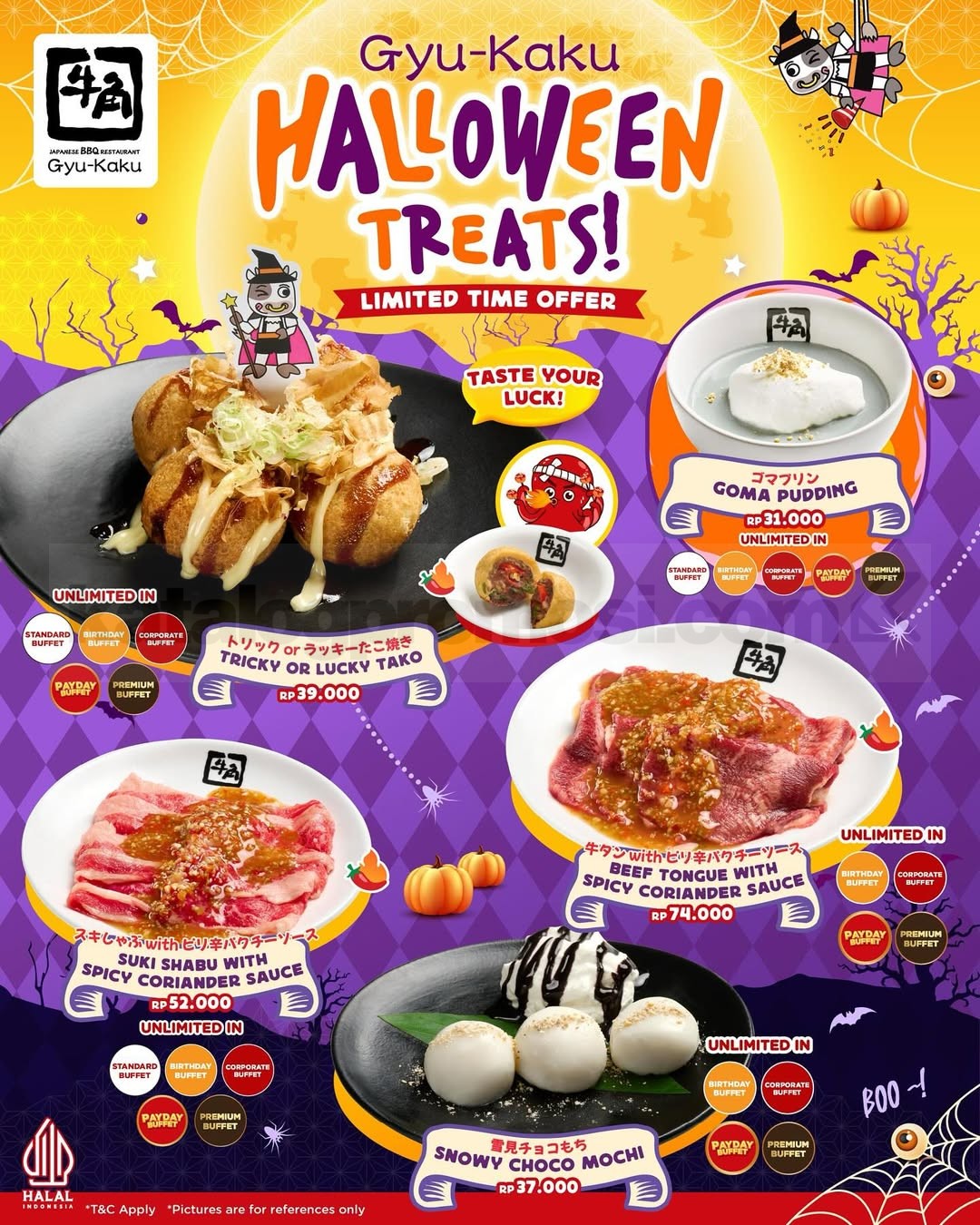 ๐ Cek gambar Promo Gyu-Kaku Halloween Treats Diskon 50% & Gratis Goma Pudding di bawah ini untuk lihat detail menunya dan pilih yang paling kamu suka!