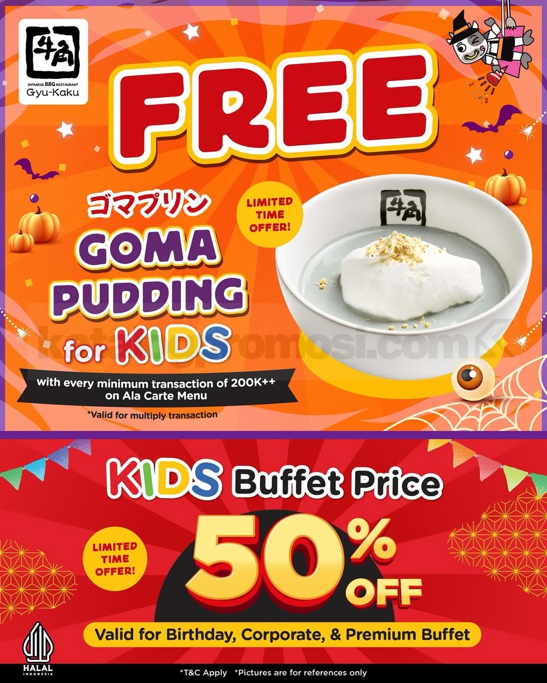 Promo Gyu-Kaku Halloween Treats diskon 50% dan gratis Goma Pudding berlaku 13โ31 Oktober 2025 di seluruh outlet Gyu-Kaku Indonesia.