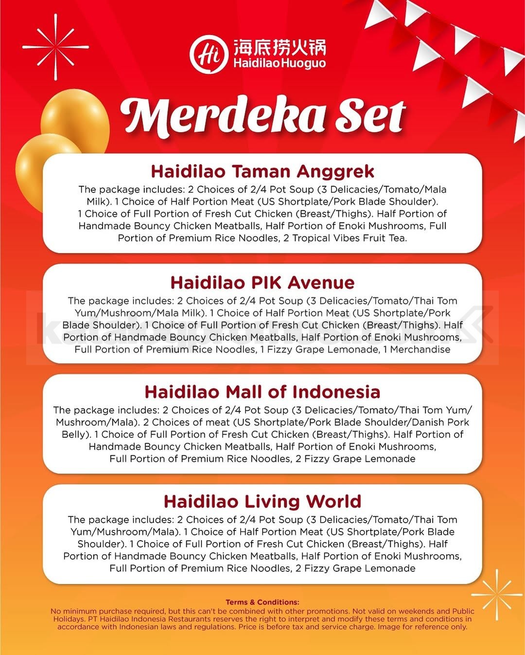 Promo berlaku untuk semua pesanan takeaway di Haidilao Taman Anggrek.