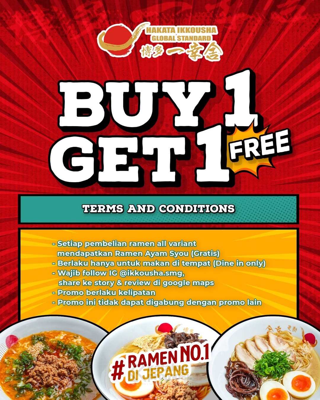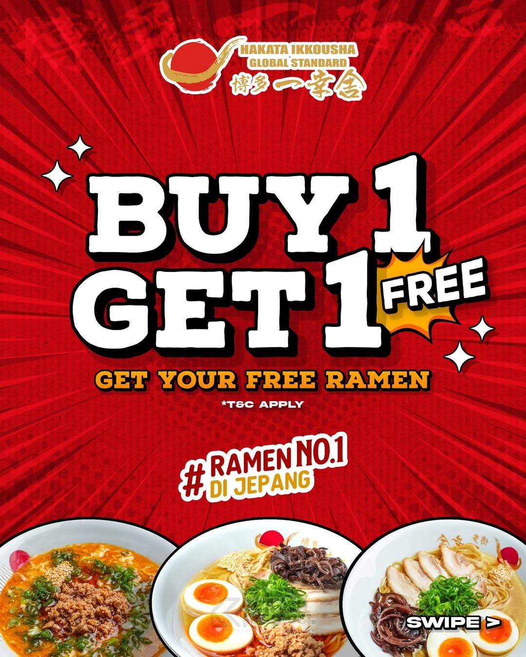 👉 Cek gambar Promo Hakata Ikkousha Buy 2 Ramen Free Chicken Gyoza di bawah ini untuk lihat detail visual promo yang bikin ngiler