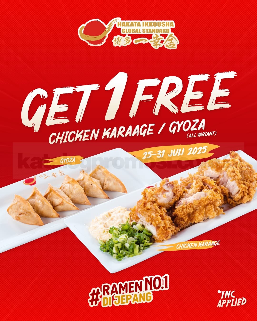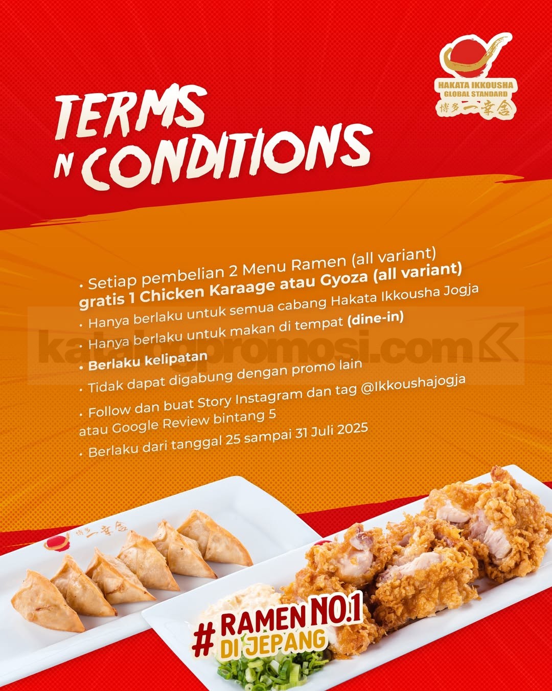 Promo Hakata Ikkousha Menu Ramen Diskon 50% untuk pembelian ramen kedua dengan syarat beli minuman, berlaku 24โ30 November 2025 di dua lokasi Jogja.