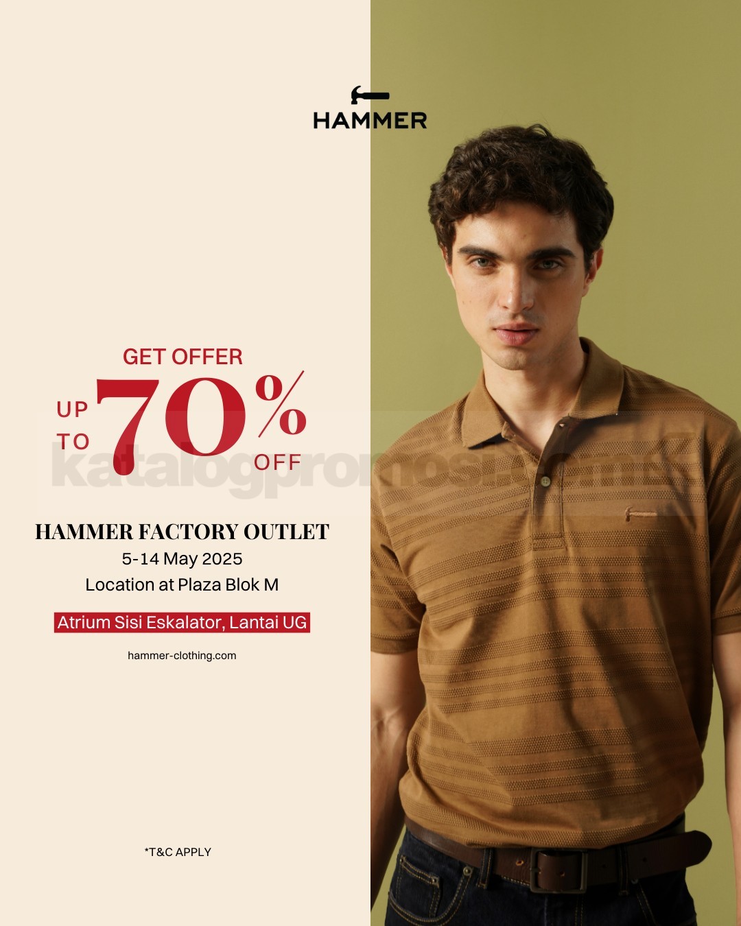 Promo HAMMER Factory Outlet hadir 5β14 Mei 2025 di Plaza Blok M β diskon besar sampai 70% buat kamu yang mau tampil stylish dan hemat!