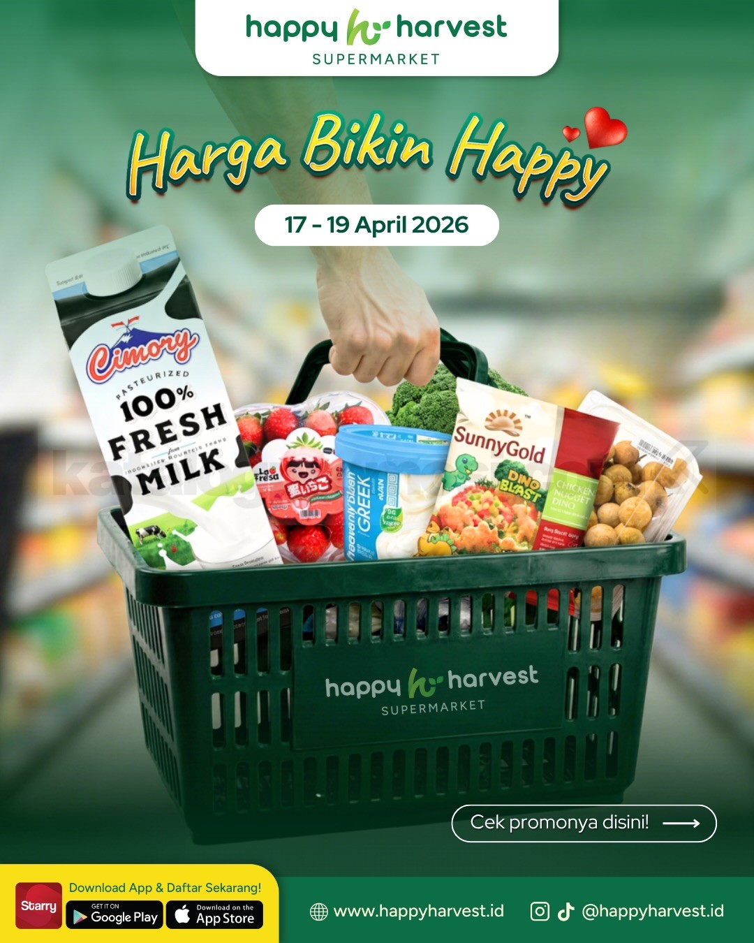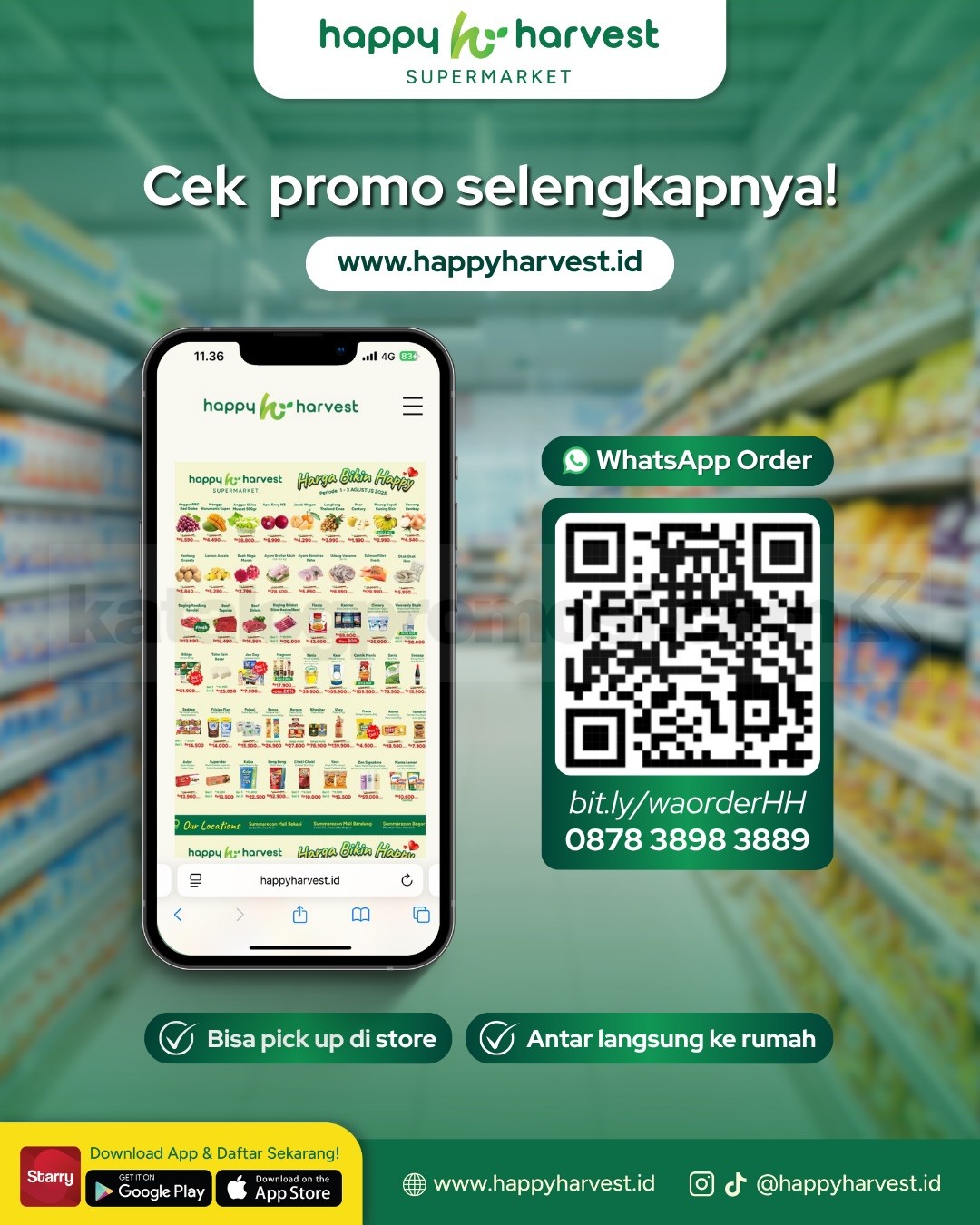 Katalog promo Happy Harvest ini lengkap banget, dari sayur segar sampai daging dan jajan anak. Yuk atur rencana belanja kamu sekarang biar semua kebutuhan rumah langsung aman sampai akhir pekan!