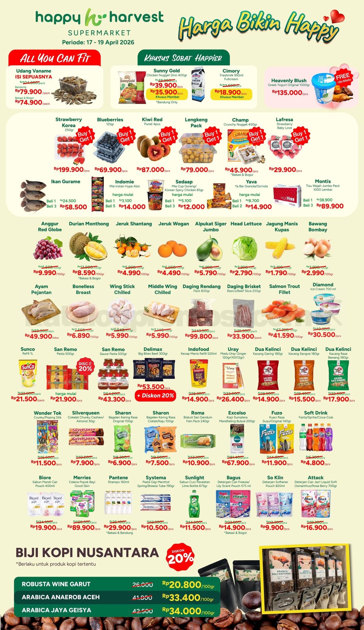 Promo Happy Harvest JSM periode 17-19 April 2026. BERLAKU khusus di Akhir Pekan Minggu ini ! Cuma di Bekasi, Bandung, Bogor