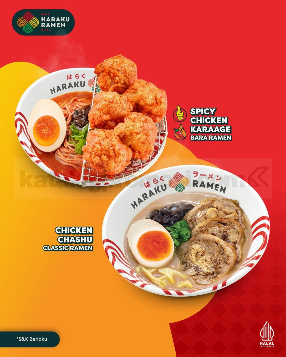 Lewat promo ini, setiap pembelian menu Ramen atau Donburi varian apa saja langsung mendapatkan Chicken Chashu Classic Ramen secara gratis. Konsepnya jelas buy 1 get 1 free ramen, jadi sekali pesan kamu bisa menikmati dua mangkuk ramen dengan rasa gurih khas Haraku yang bikin nagih.