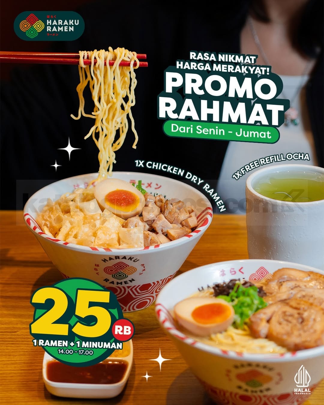 Promo Haraku Ramen RAHMAT Chicken Ramen Rp. 25.000 dengan free refill ocha, makan di jam tertentu, berlaku mulai 1 Desember 2025 – 31 Desember 2025.