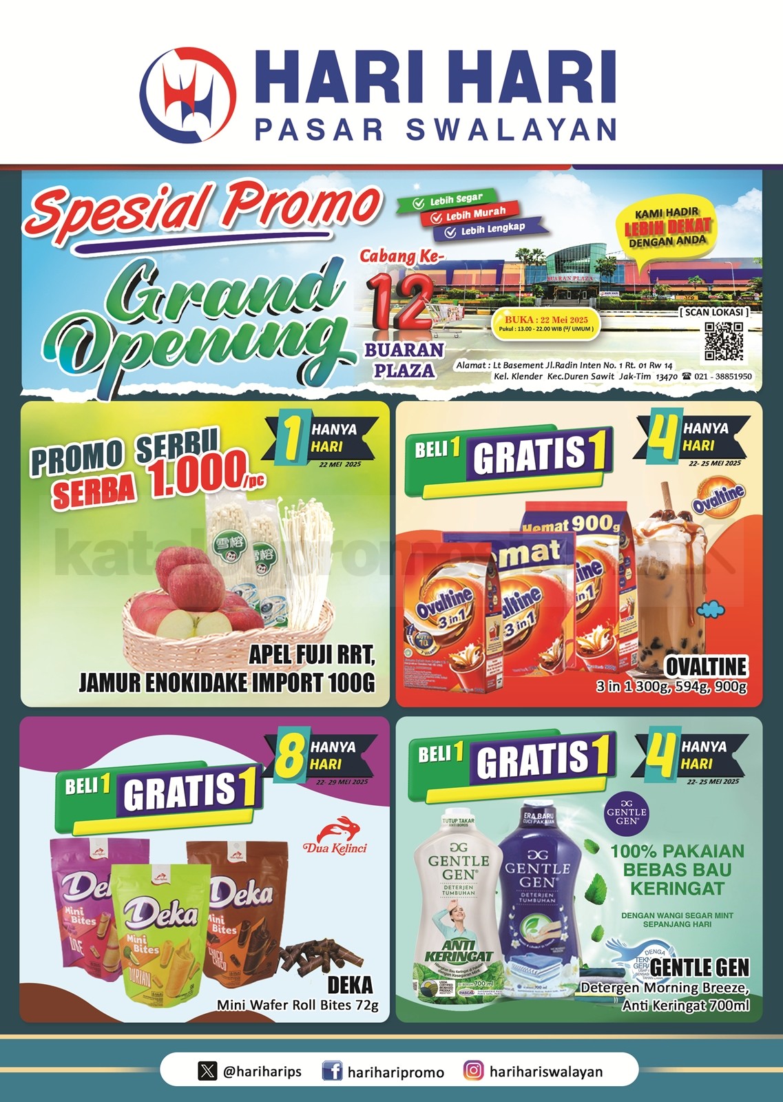 Karena promo berlaku di seluruh outlet Hari-Hari Pasar Swalayan, kamu bisa memanfaatkannya kapan pun saat belanja stok mingguan. Tidak bisa digabung struk atau dipisah transaksi, jadi pastikan nilai belanja mencapai minimum dalam satu kali pembayaran.